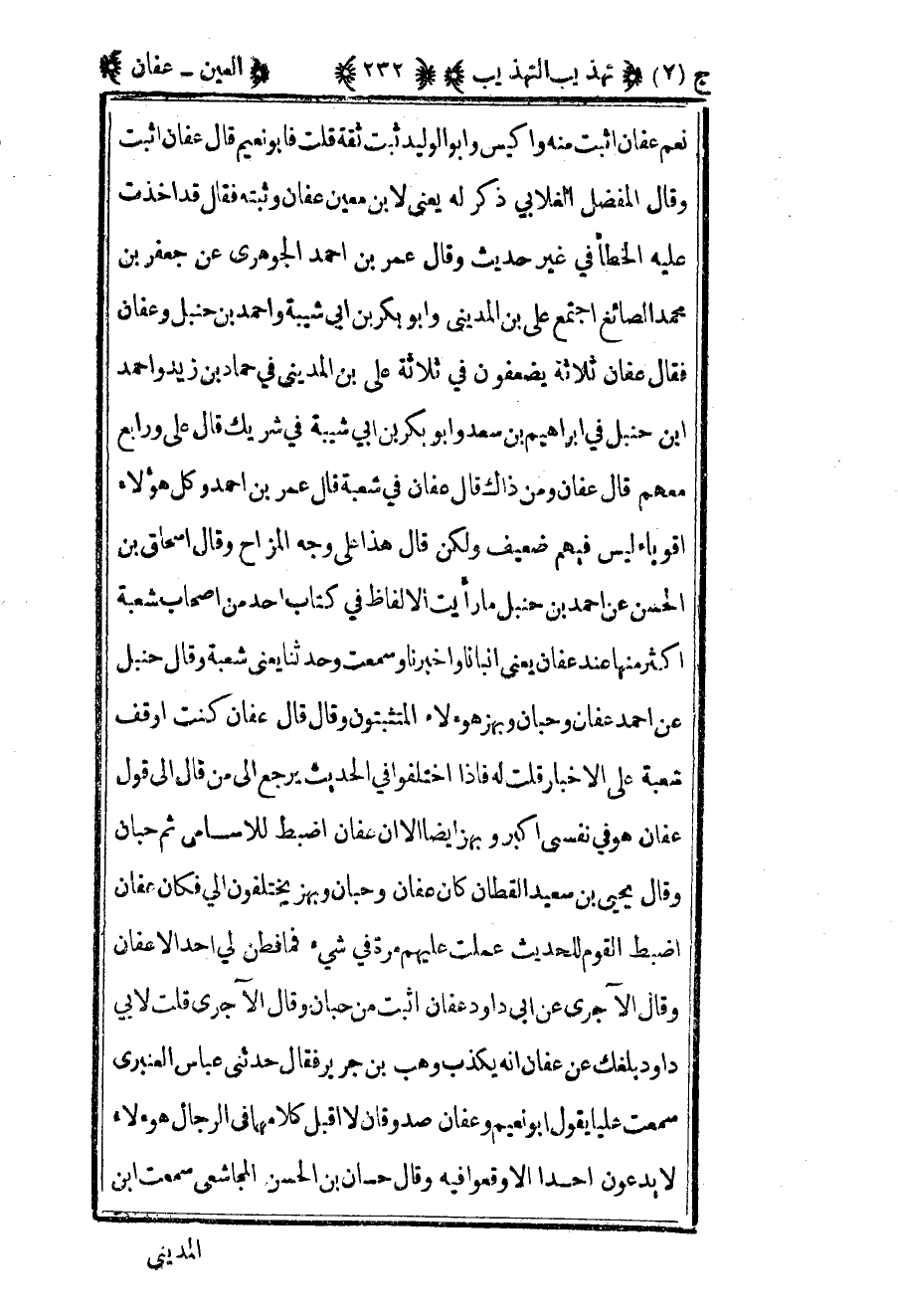 نعم عفان أثبت منه وأكيس وأبو الوليد ثبت ثقة قلت فأبو نعيم قال عفان أثبت وقال المفضل الغلابي ذكر له يعني لابن معين عفان وثبته فقال قد أخذت عليه الخطأ في