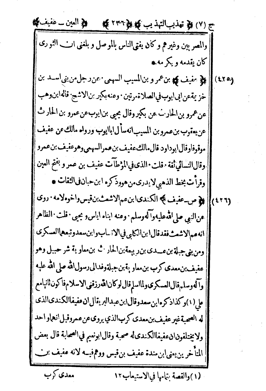 -426 "عفيف" بن عمرو بن المسيب السهمي عن رجل من بني أسد بن خزيمة عن أبي أيوب في الصلاة مرتين وعنه بكير بن الأشج قاله بن وهب عن عمرو بن الحارث عن بكير وقال يحيى بن أيوب عن عمرو بن