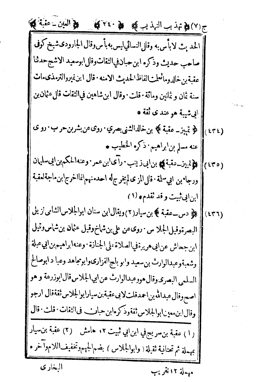 435- "تمييز عقبة" بن خالد الشني بصري روى عن بشر بن حرب روى عنه مسلم بن إبراهيم ذكره الخطيب