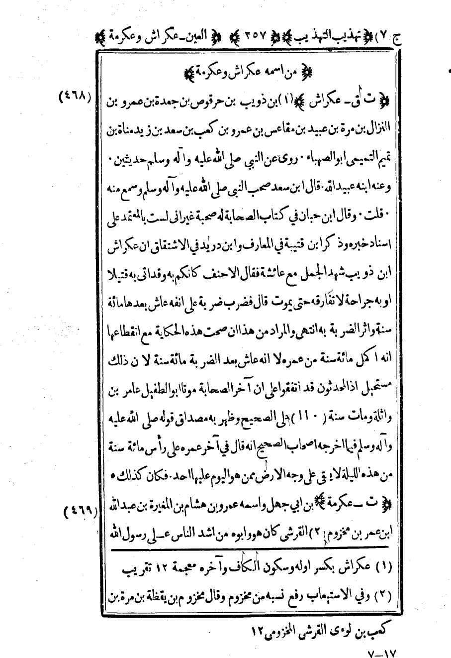 1 عكراش بكسر أوله وسكون الكاف آخره معجمة 12تقريب