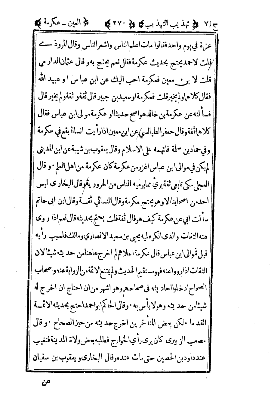 عزة في يوم واحد فقالوا مات أعلم الناس وأشعر الناس وقال المروذي قلت لأحمد يحديث بأحاديث عكرمة فقال نعم يحتج به وقال عثمان الدارمي قلت لابن معين فعكرمة أحب إليك عن بن عباس أو عبيد الله فقال كلاهما ولم يخير قلت فعكرمة أو سعيد بن جبير قال ثقة وثقة ولم يخير قال فسألته عن عكرمة بن خالد هو أصح حديثا أو عكرمة مولى بن عباس فقال كلاهما ثقة وقال جعفر الطيالسي عن بن معين إذا رأيت إنسانا يقع في عكرمة وفي حماد بن سلمة فاتهمه على الإسلام وقال يعقوب بن أبي شيبة عن بن المديني لم يكن في موالي بن عباس أغزر من عكرمة كان عكرمة من أهل العلم وقال العجلي مكي تابعي ثقة بريء مما يرميه الناس من الحرورية وقال البخاري ليس أحد من أصحابنا الا وهو يحتج بعكرمة وقال النسائي ثقة وقال بن أبي حاتم سألت أبي عن عكرمة كيف هو قال ثقة قلت يحتج بحديثه قال نعم إذا روى عنه الثقات والذي أنكر عليه يحيى بن سعيد الأنصاري ومالك فلسبب رأيه قيل فموالي بن عباس قال عكرمة أعلاهم لم أخرج ها هنا من حديثه شيئا لأن الثقات إذا رووا عنه فهو مستقيم الحديث ولم يمتنع الأئمة من الرواية عنه وأصحاب الصحاح أدخلوا أحاديثه في صحاحهم وهو أشهر من أن أحتاج أن أخرج له شيئا من حديثه وهو لا بأس به وقال الحاكم أبو أحمد احتج بحديثه الأئمة القدماء لكن بعض المتأخرين أخرج حديثه