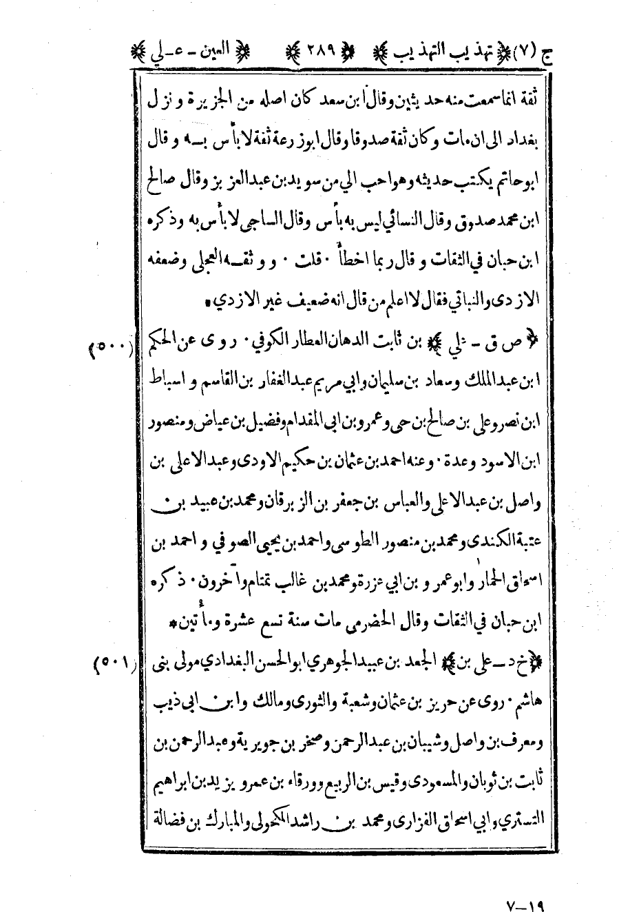 501- "ص ق – علي" وابن ماجة علي بن ثابت الدهان العطار الكوفي روى عن الحكم بن عبد الملك وسعاد بن سليمان وأبي مريم عبد الغفار بن القاسم وأسباط بن نصر وعلي بن صالح بن حي وعمرو بن أبي المقدام وفضيل بن عياض ومنصور بن الأسود وعدة وعنه أحمد بن عثمان بن حكيم الأودي وعبد الأعلى بن واصل بن عبد الأعلى والعباس بن جعفر بن الزبرقان ومحمد بن عبيد بن عتبة الكندي ومحمد بن منصور الطوسي وأحمد بن يحيى الصوفي وأحمد بن إسحاق الحمار وأبو عمرو بن أبي عزرة ومحمد بن غالب تمتام وآخرون ذكره بن حبان في الثقات وقال الحضرمي مات سنة تسع عشرة ومائتين