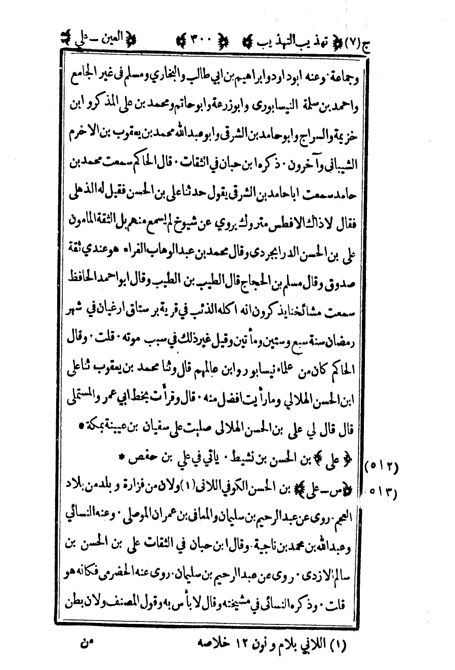 514- "س – علي" بن الحسن الكوفي اللاني1 ولان من فزارة وبلد من بلاد العجم روى عن عبد الرحيم بن سليمان والمعافى بن عمران الموصلي وعنه النسائي وعبد الله بن محمد بن ناجية وقال بن حبان في الثقات علي بن الحسن بن سالم الأزدي روى عن عبد الرحيم بن سليمان روى عنه الحضرمي فكأنه هو قلت وذكره النسائي في مشيخته وقال لا بأس به وقول المصنف ولان بطن