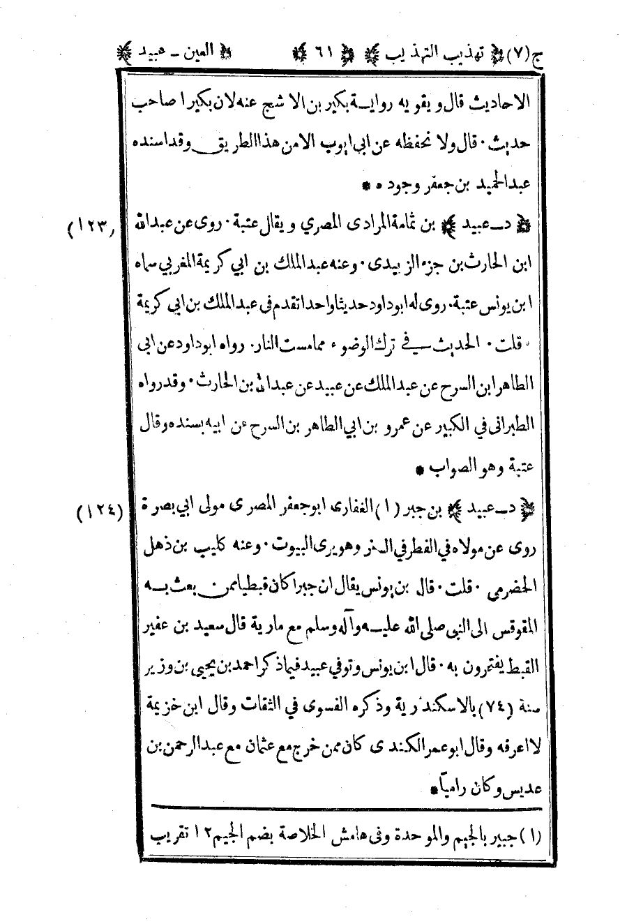 1 جبير بالجيم والموحدة وفي هامش الخلاصة بضم الجيم 12 تقريب