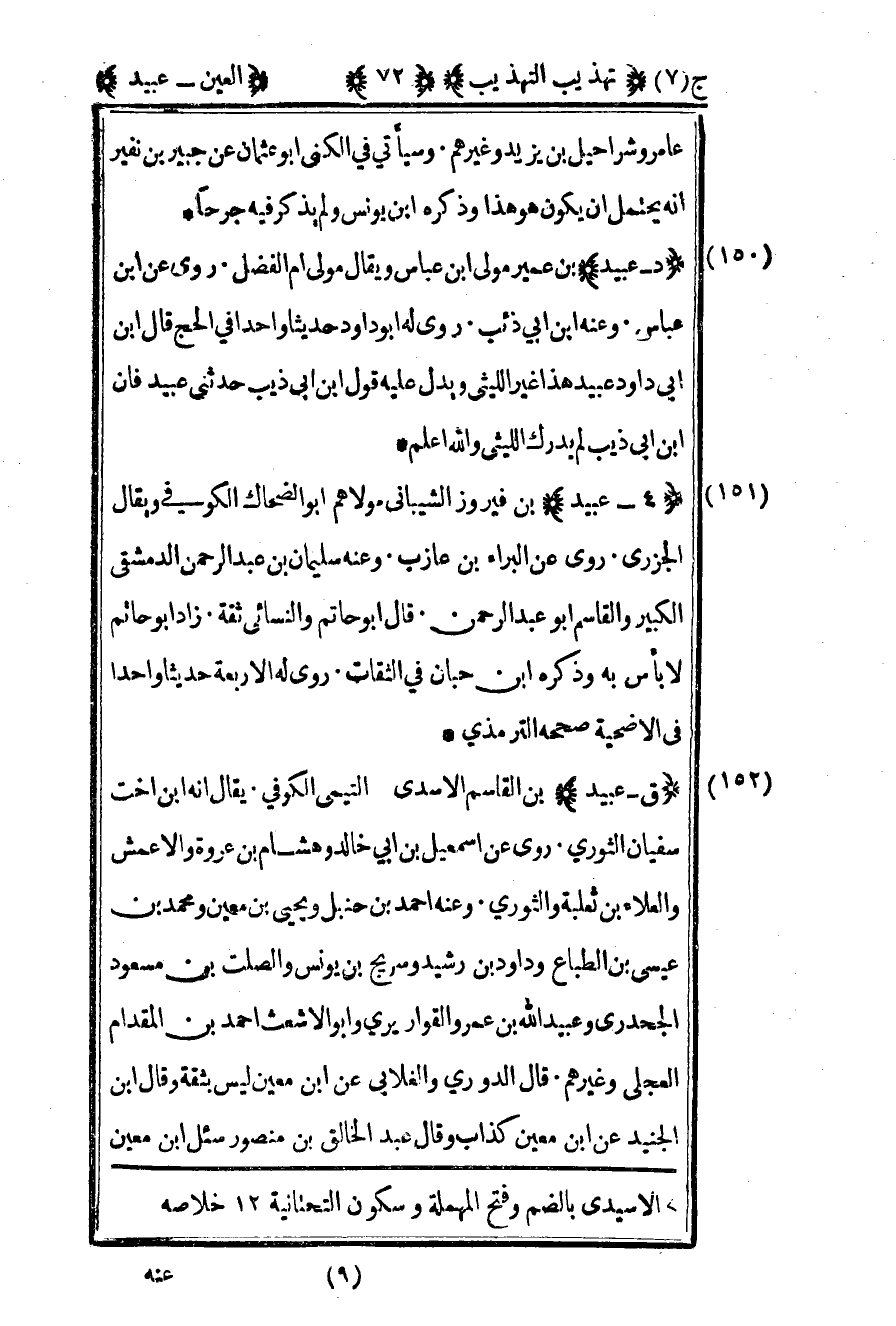 150- "د – عبيد" بن عمير مولى بن عباس ويقال مولى أم الفضل روى عن بن عباس وعنه بن أبي ذئب روى له أبو داود حديثا واحدا في الحج قال بن أبي داود عبيد هذا غير الليثي ويدل عليه قول بن أبي ذيب حدثني عبيد فإن بن أبي ذيب لم يدرك الليثي والله أعلم