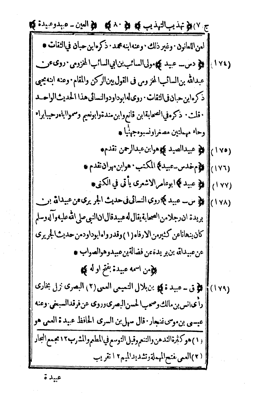 178- "س – عبيد" روى النسائي في حديث الجريري عن عبيد الله بن بريدة أن رجلا من الصحابة يقال له عبيد قال أن النبي صلى الله عليه وسلم كان ينهانا عن كثير من الأرفاه1 وقد رواه أبو داود من حديث الجريري عن عبيد الله بن بريدة عن فضالة بن عبيد الله وهو الصواب