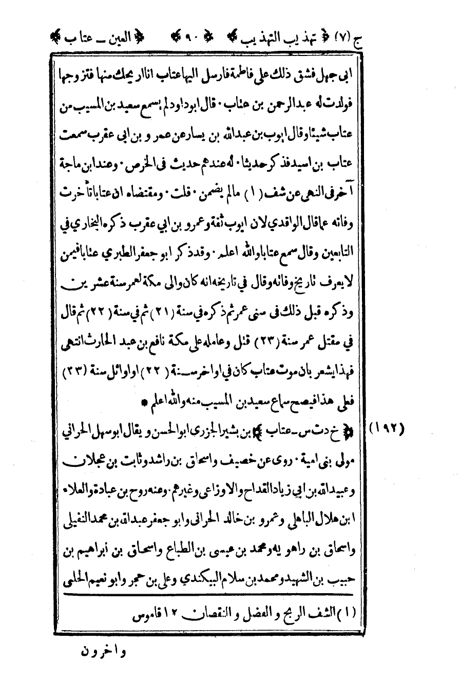 192- "خ د ت س – عتاب" بن بشير الجزري أبو الحسن ويقال أبو سهل الحراني مولى بني أمية روى عن خصيف وإسحاق بن راشد وثابت بن عجلان وعبيد الله بن أبي زياد القداح والأوزاعي وغيرهم وعنه روح بن عبادة والعلاء بن هلال الباهلي وعمرو بن خالد الحراني وأبو جعفر عبد الله بن محمد النفيلي وإسحاق بن راهويه ومحمد بن عيسى بن الطباع وإسحاق بن إبراهيم بن حبيب بن الشهيد ومحمد بن سلام البيكندي وعلي بن حجر وأبو نعيم الحلبي