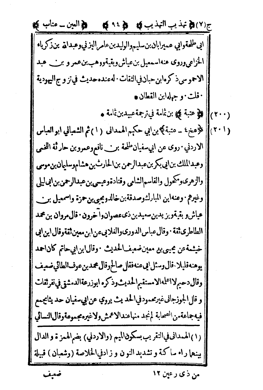 1 الهمداني في التقريب بسكون الميم (والأردني) بضم الهمزة والدال بينهما راء ساكنه وتشديد النون وزاد في الخلاصة (وشعبان) قبيلة من ذي رعين 12