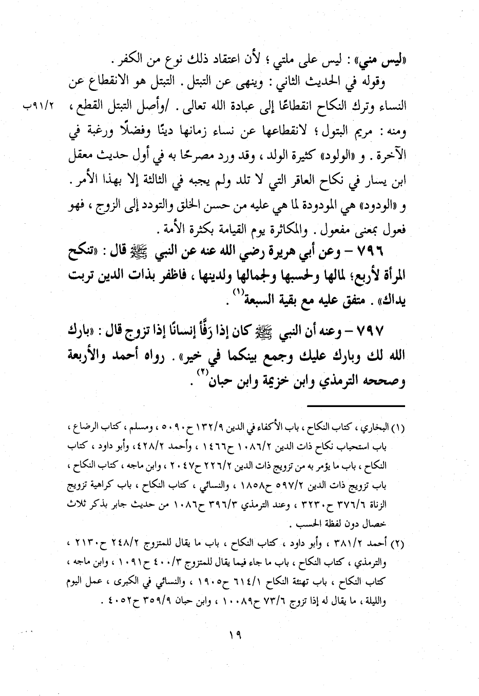 (¬2) أحمد 2/ 381، وأبو داود، كتاب النكاح، باب ما يقال للمتزوج 2/ 248 ح 2130، والترمذي، كتاب النكاح، باب ما جاء فيما يقال للمتزوج 3/ 400 ح 1091، وابن ماجه، كتاب النكاح، باب تهنئة النكاح 1/ 614 ح 1905، والنسائي في الكبرى، عمل اليوم والليلة، ما يقال له إذا تزوج 6/ 73 ح 10089، وابن حبان 9/ 359 ح 4052.