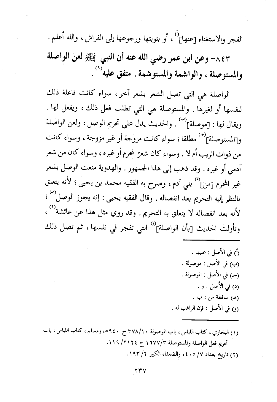 (¬1) البخاري، كتاب اللباس، باب الموصولة 10/ 378 ح 5940، ومسلم، كتاب اللباس، باب تحريم فعل الواصلة والمستوصلة 3/ 1677 ح 2124/ 119.