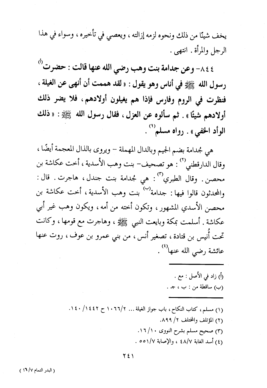 (¬1) مسلم، كتاب النكاح، باب جواز الغيلة ... 2/ 1066 ح 1442/ 140.