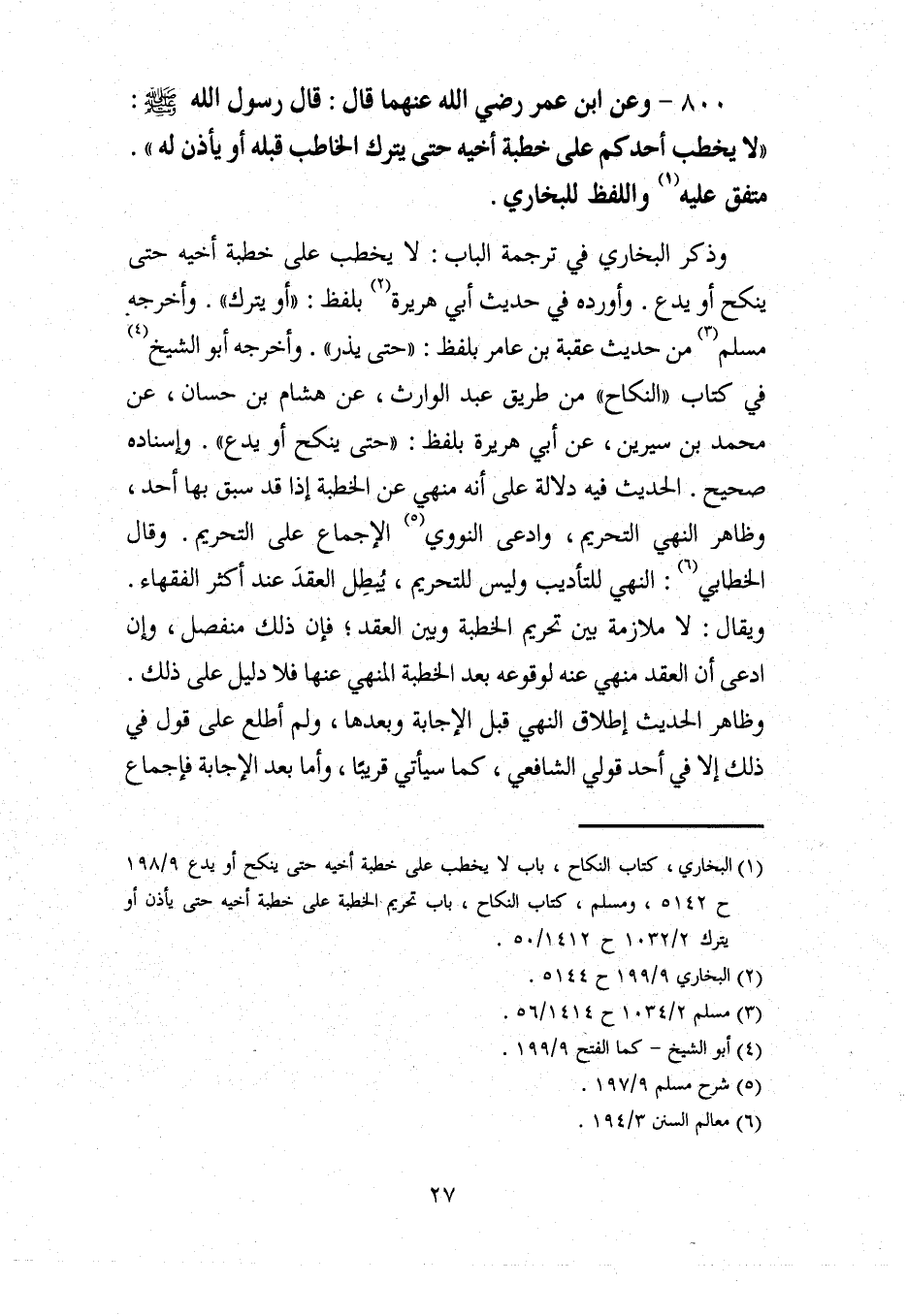 (¬1) البخاري، كتاب النكاح، باب لا يخطب على خطبة أخيه حتى ينكح أو يدع 9/ 198 ح 5142، ومسلم، كتاب النكاح، باب تحريم. الخطبة على خطبة أخيه حتى يأذن أو يترك 2/ 1032 ح 1412/ 50.