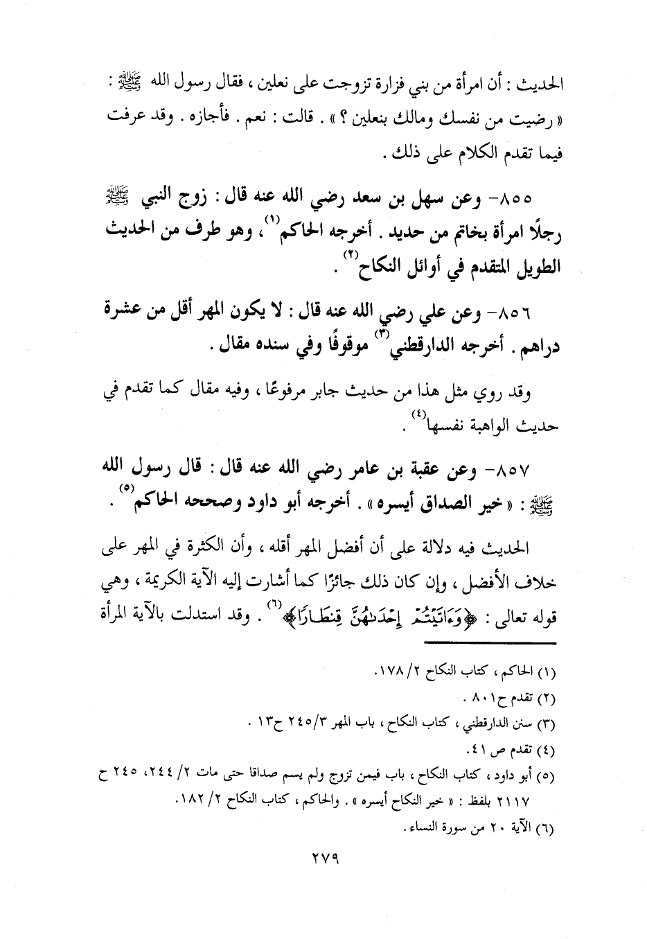 856 - وعن علي رضي الله عنه قال: لا يكون المهر أقل من عشرة دراهم. أخرجه الدارقطني (¬3) موقوفًا وفي سنده مقال.