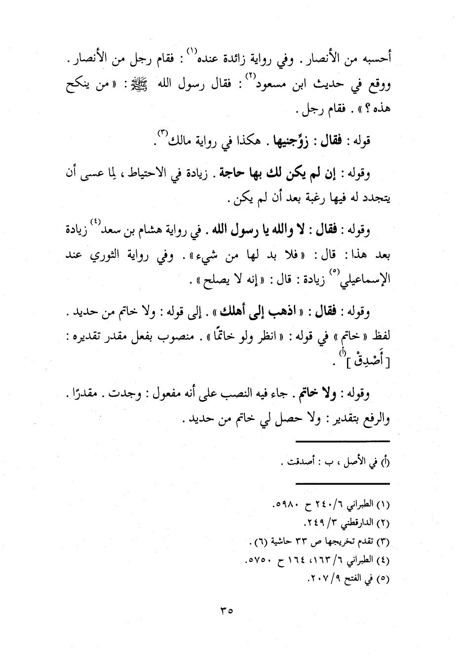 وقوله: فقال: "اذهب إلى أهلك". إلى قوله: ولا خاتم من حديد. لفظ "خاتم" في قوله: "انظر ولو خاتمًا". منصوب بفعل مقدر تقديره: [أَصْدِق] (أ).