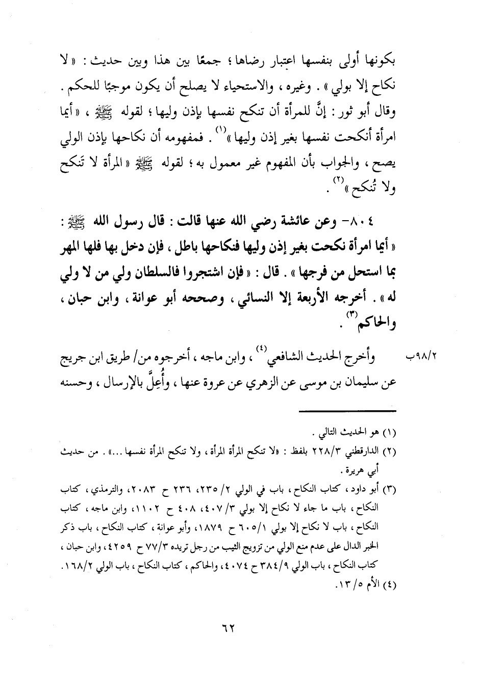 (¬3) أبو داود، كتاب النكاح، باب في الولي 2/ 235، 236 ح 2083، والترمذي، كتاب النكاح، باب ما جاء لا نكاح إلَّا بولي 3/ 407، 408 ح 1102، وابن ماجه، كتاب النكاح، باب لا نكاح إلَّا بولي 1/ 605 ح 1879، وأبو عوانة، كتاب النكاح، باب ذكر الخبر الدال على عدم منع الولي من تزويج الثيب من رجل تريده 3/ 77 ح 4259، وابن حبان، كتاب النكاح، باب الولي 9/ 384 ح 4074، والحاكم، كتاب النكاح، باب الولي 2/ 168.
