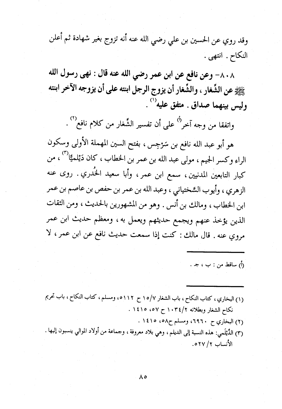 (¬1) البُخاريّ، كتاب النكاح، باب الشغار 7/ 15 ح 5112، ومسلم، كتاب النكاح، باب تحريم نكاح الشغار وبطلانه 2/ 1034 ح 57، 1415.