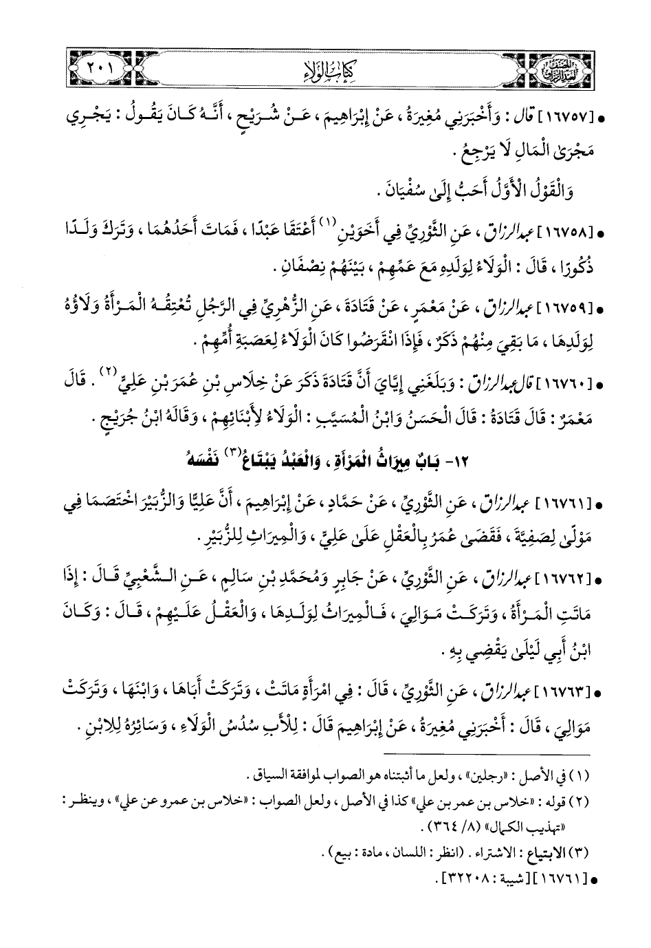 16761 - عبد الرزاق، عَنِ الثَّورِيِّ، عَن حَمَّادٍ، عَن إِبرَاهِيمَ، أَنَّ عَلِيًّا، وَالزُّبَيْرَ اخْتَصَمَا فِي مَوْلًى لِصَفِيَّةَ، فَقَضَى عُمَرُ بِالْعَقْلِ عَلَى عَلِيٍّ، وَالمِيرَاثِ (1) لِلزُّبَيْرِ.
