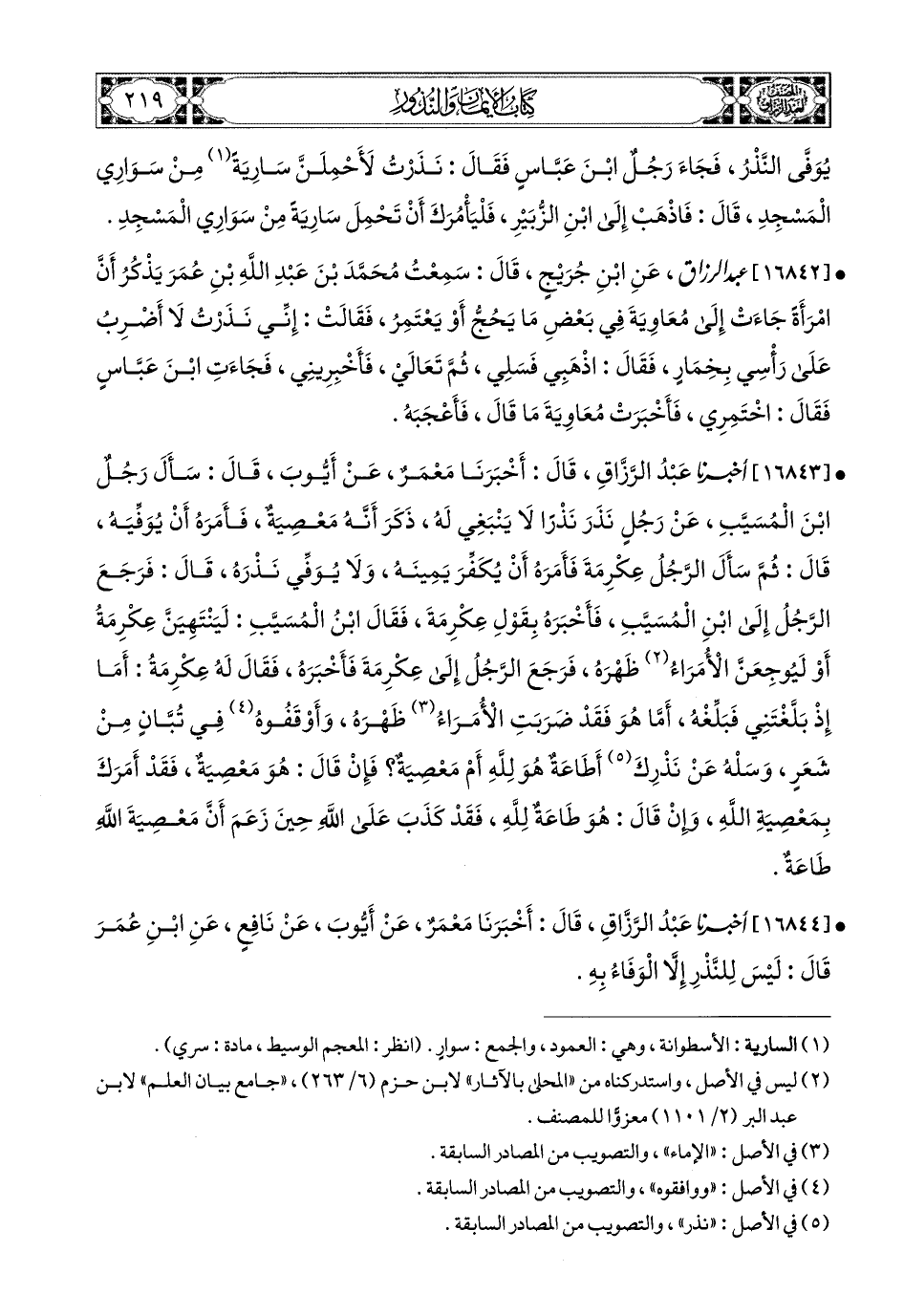 (1) جاء بعد هذا الأثر في طبعة المكتب الإسلامي: [عَبد الرَّزَّاقِ، أَخبَرنا مَعْمَرٌ، عَن قَتَادَةَ، عَنِ ابنِ المُسَيَّبِ، مِثْلَ قَوْلِ ابنِ عُمَرَ]، وقال محققه: زيد من السادس، وهو في هذا الباب في موضع لا يليق به، فحذفته من هناك وأثبته هنا.