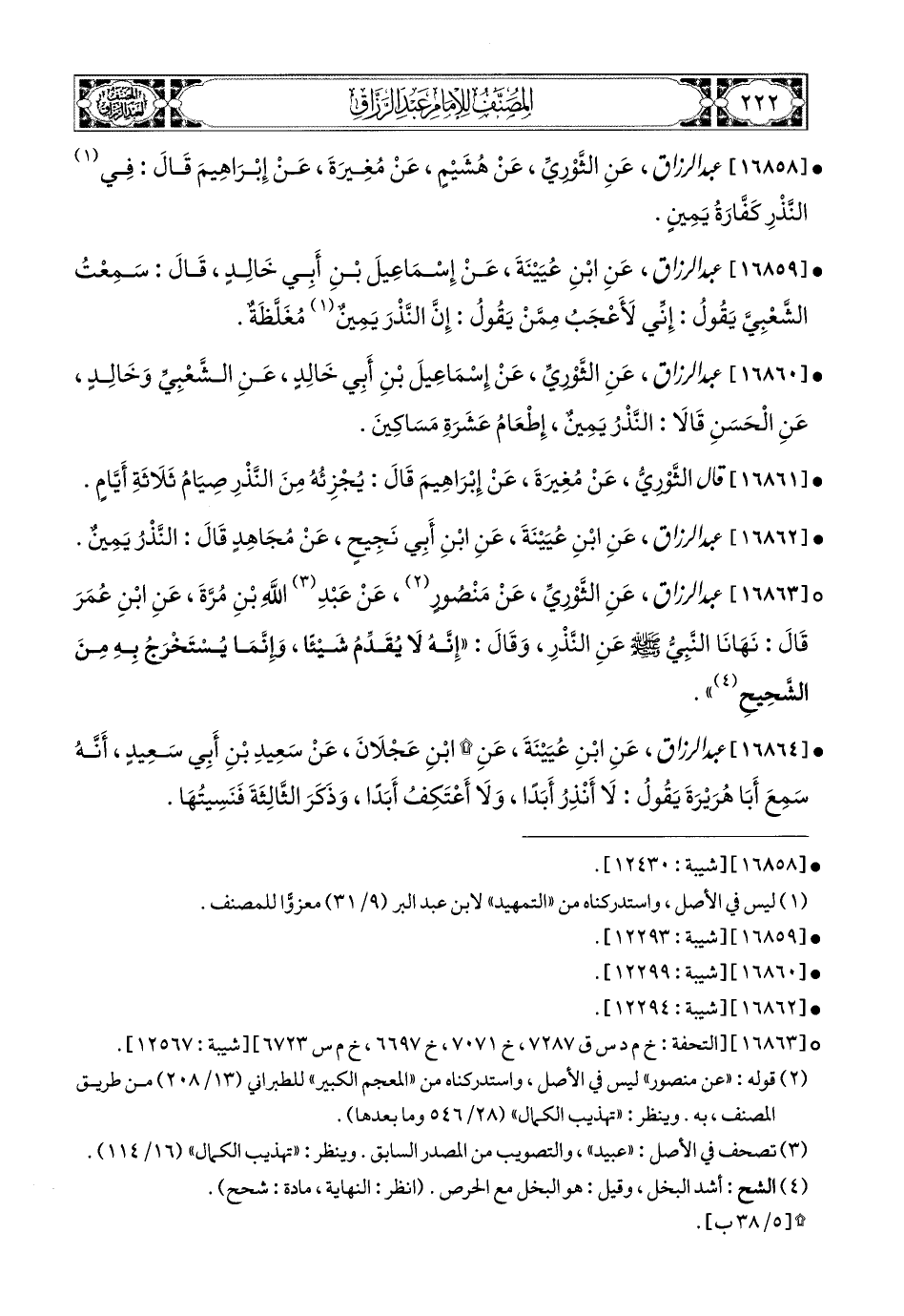 16859- عبد الرزاق، عَنِ ابْنِ عُيَيْنَةَ، عَن إِسْمَاعِيلَ بْنِ أَبِي خَالِدٍ، قَالَ: سَمِعْتُ الشَّعْبِيَّ يَقُولُ: إِنِّي لأَعْجَبُ مِمَّنْ يَقُولُ: إِنَّ النَّذْرَ يَمِينٌ مُغَلَّظَةٌ.