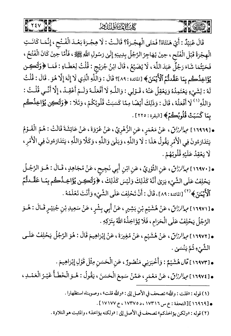 16971- عبد الرزاق، عَن هُشَيْمِ بْنِ بَشِيرٍ، عَنْ أَبِي بِشْرٍ، عَن سَعيدِ بْنِ جُبَيرٍ قَالَ: هُوَ الرَّجُلُ يَحْلِفُ عَلَى الْحَرَامِ، فَلاَ يُؤَاخِذُهُ اللهُ بِتَرْكِهِ.