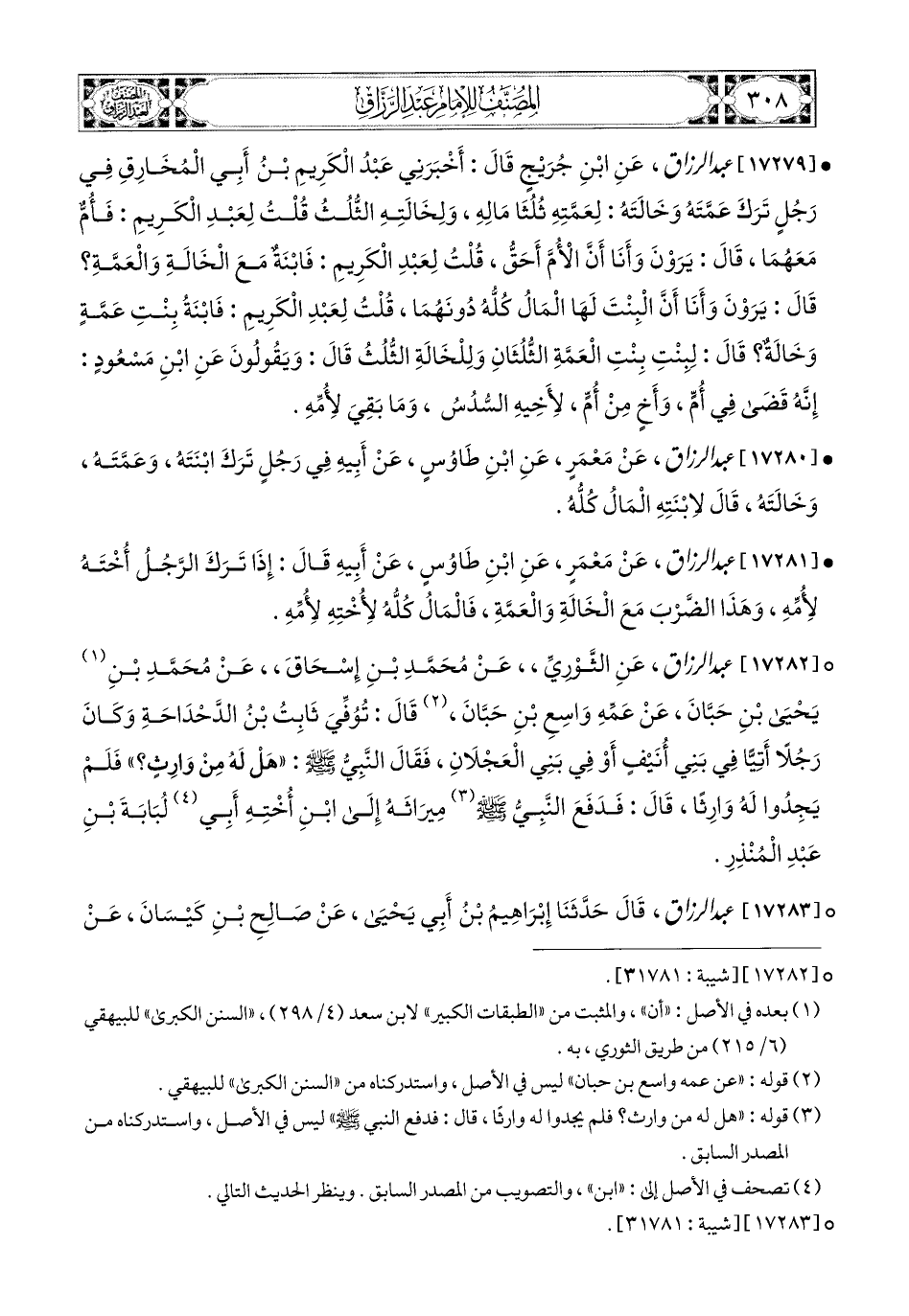 17280- عبد الرزاق، عَنْ مَعْمَرٍ، عَنِ ابْنِ طَاوُوسٍ، عَنْ أَبِيه،؛ فِي رَجُلٍ تَرَكَ ابْنَتَهُ، وَعَمَّتَهُ، وَخَالَتَهُ، قَالَ: لاِبْنَتِهِ المَالُ كُلُّهُ.