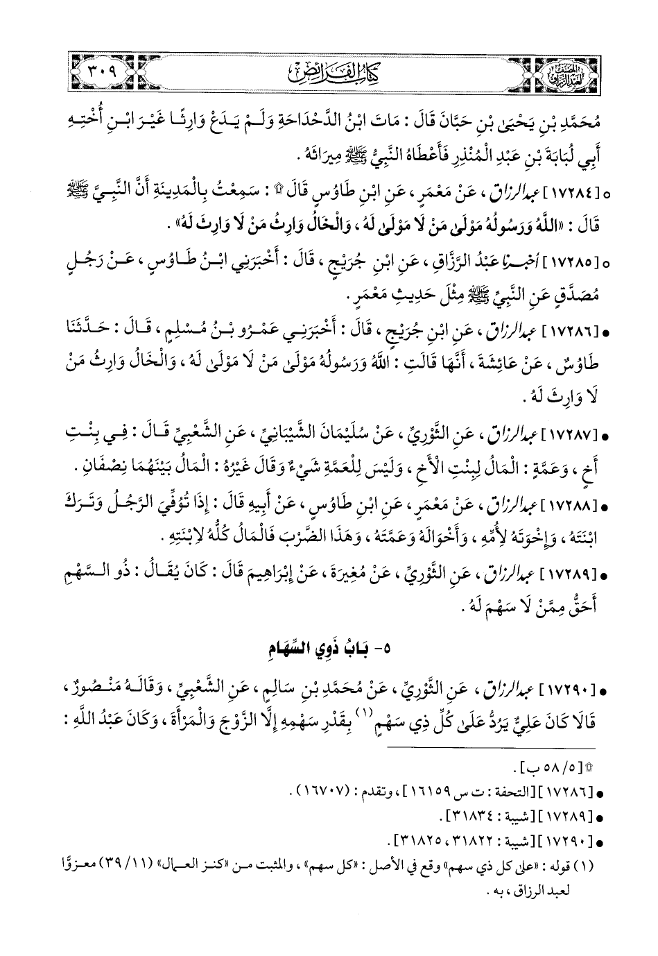5- بَابُ ذَوِي السِّهَامِ.