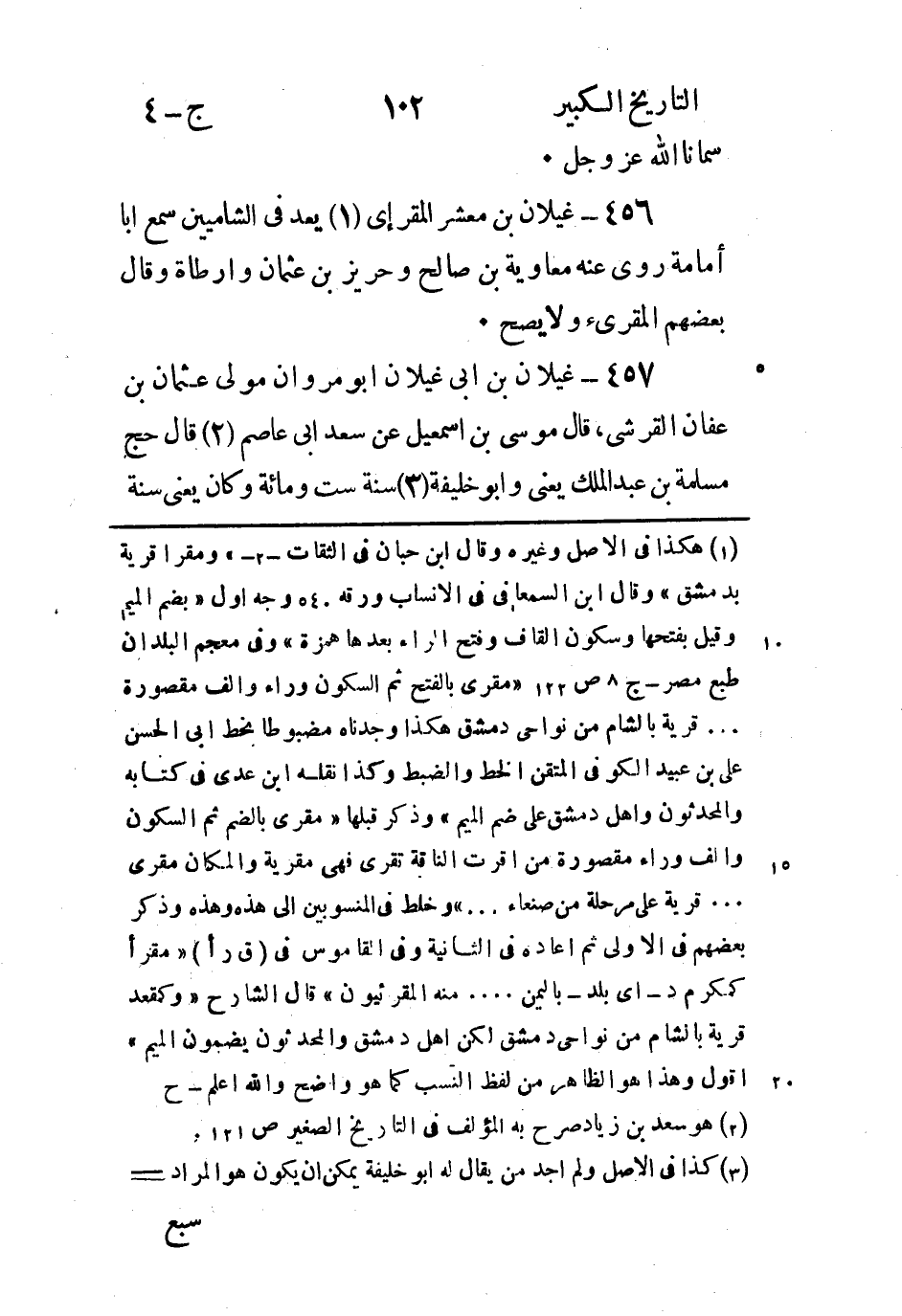 456 - غيلان بن معشر المقرإى (1) يعد فِي الشاميين سَمِعَ أَبَا أمامة روى عَنْهُ مُعَاوِيَة بْن صَالِحٍ وحريز بْن عثمان وأرطاة وَقَالَ بعضهم المقرئ ولا يصح.