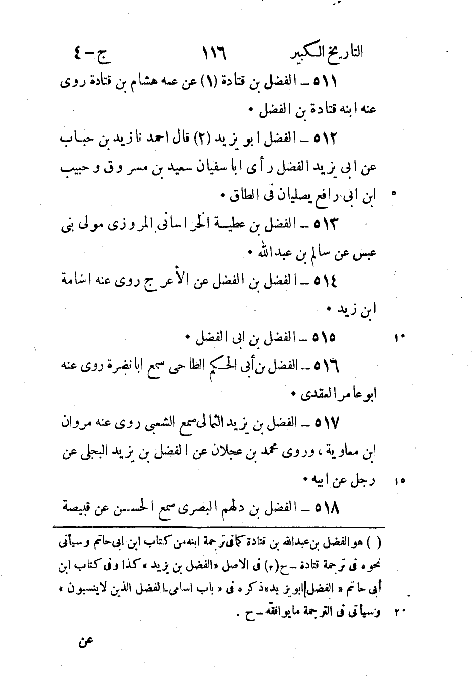 511 - الفضل بْن قتادة (1) عَنْ عمه هشام بْن قتادة روى عنه ابنه قتادة بْن الفضل.