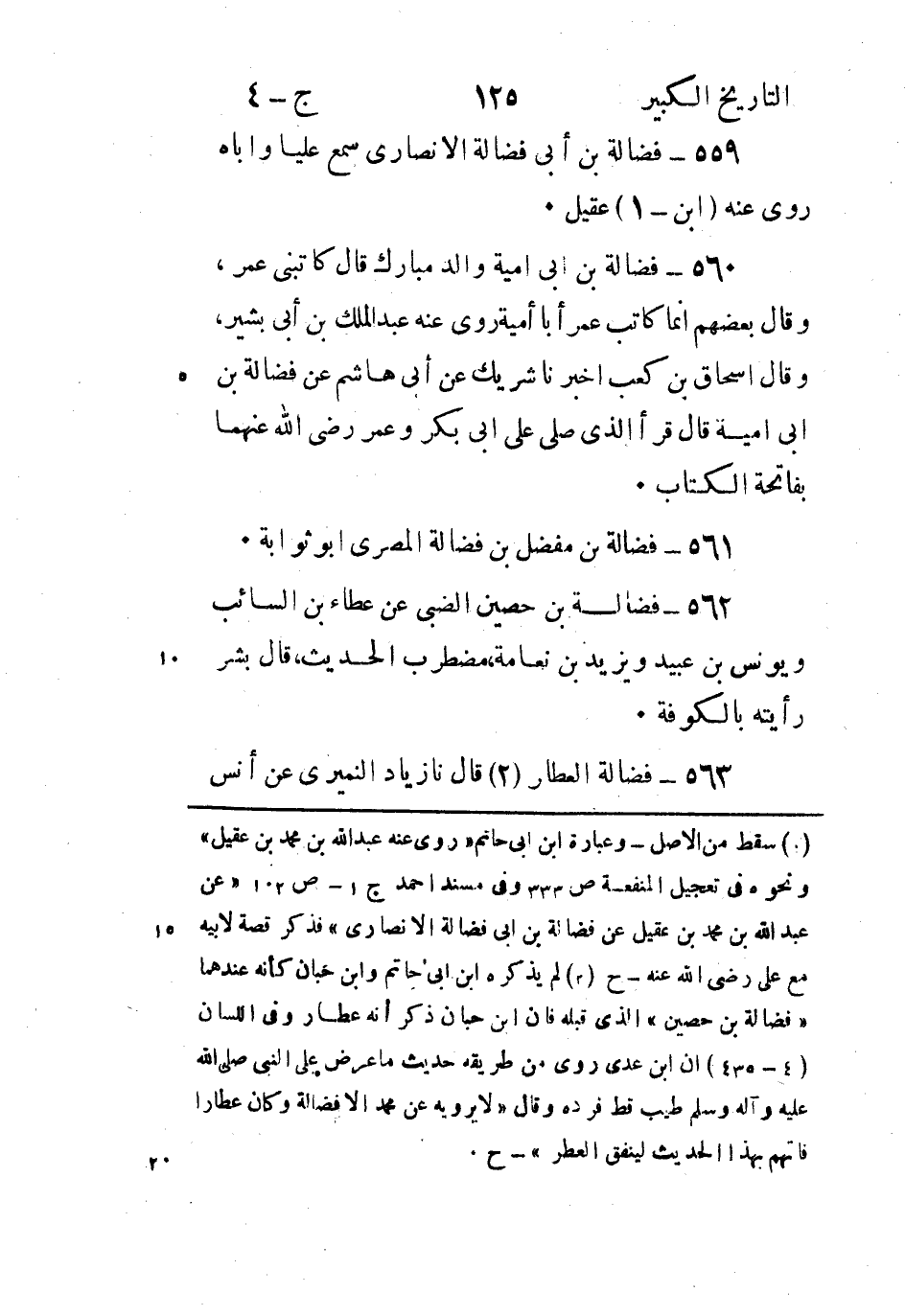 559 - فضالة بْن أَبِي فضالة الْأَنْصَارِيّ سَمِعَ عليا وأباه روى عنه (ابْن - 1) عقيل.
