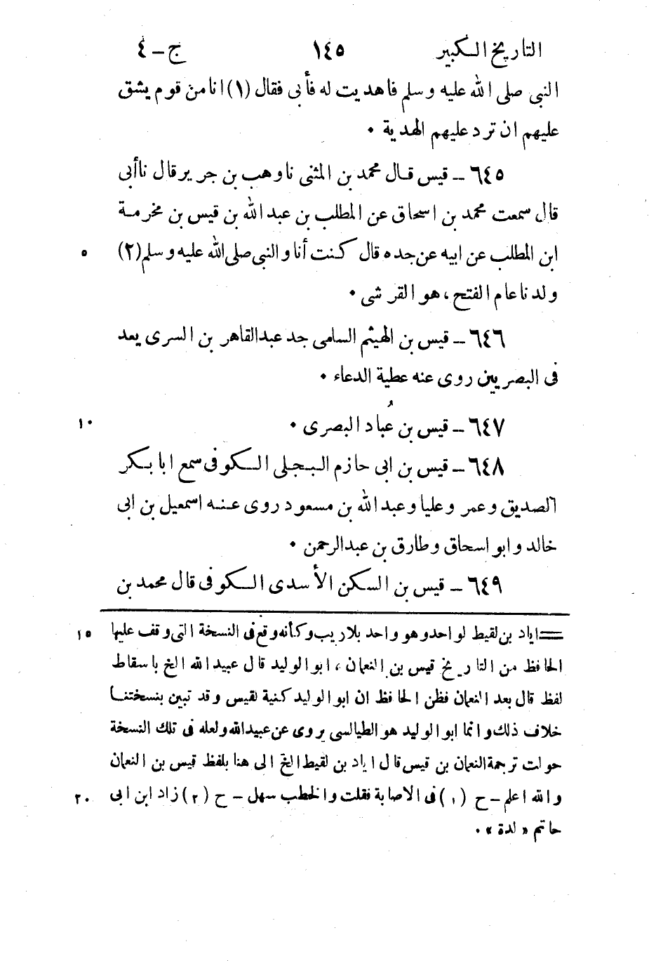 648 - قيس بْن أَبِي حازم البجلي الكوفِي سَمِعَ أبا بكر الصديق وعُمَر وعليا وعبد اللَّه بْن مَسْعُود روى عنه اسمعيل بْن أَبِي خَالِد وأَبُو إِسْحَاق وطارق بْن عَبْد الرَّحْمَن.