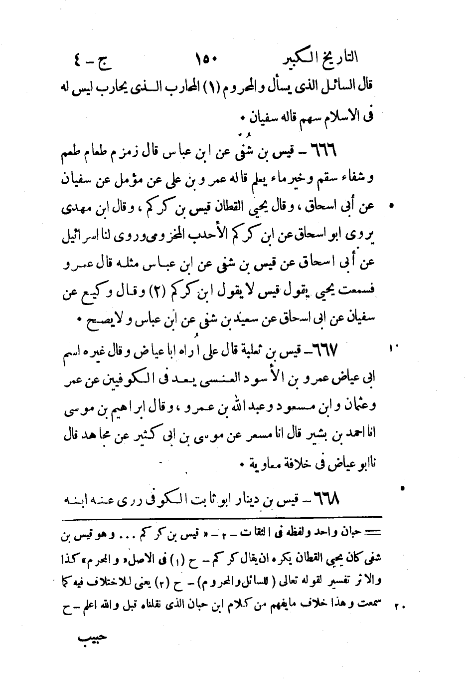 2 - (قيس بن كركم..وهو قيس بن شفى كان يحيى القطان يكره ان يقال كركم - ح (1) في الاصل (والمحرم) كذا والاثر تفسير لقوله تعالى (للسائل والمحروم) - ح (2) يعنى للاختلاف فيه كما