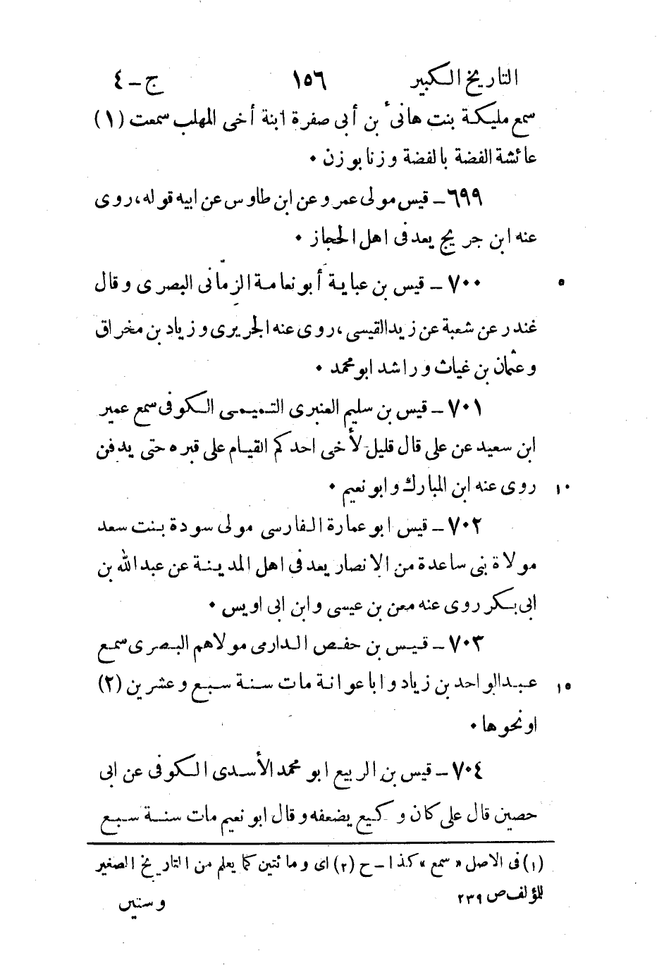 703 - قيس بْن حفص الدارمي مولاهم الْبَصْرِيّ سَمِعَ عَبْد الواحد بْن زياد وأبا عوانة مات سنة سبع وعشرين (2) أو نحوها.