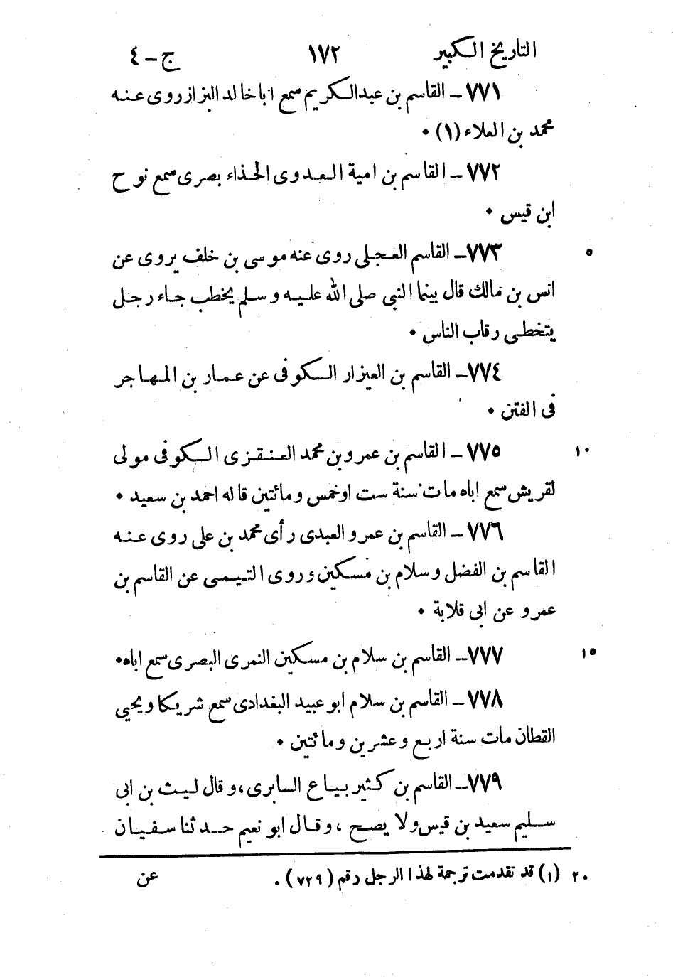778 - القاسم بْن سلام أَبُو عُبَيْد البغدادي سَمِعَ شريكا وَيَحْيَى القطان مات سنة أربع وعشرين ومائتين.