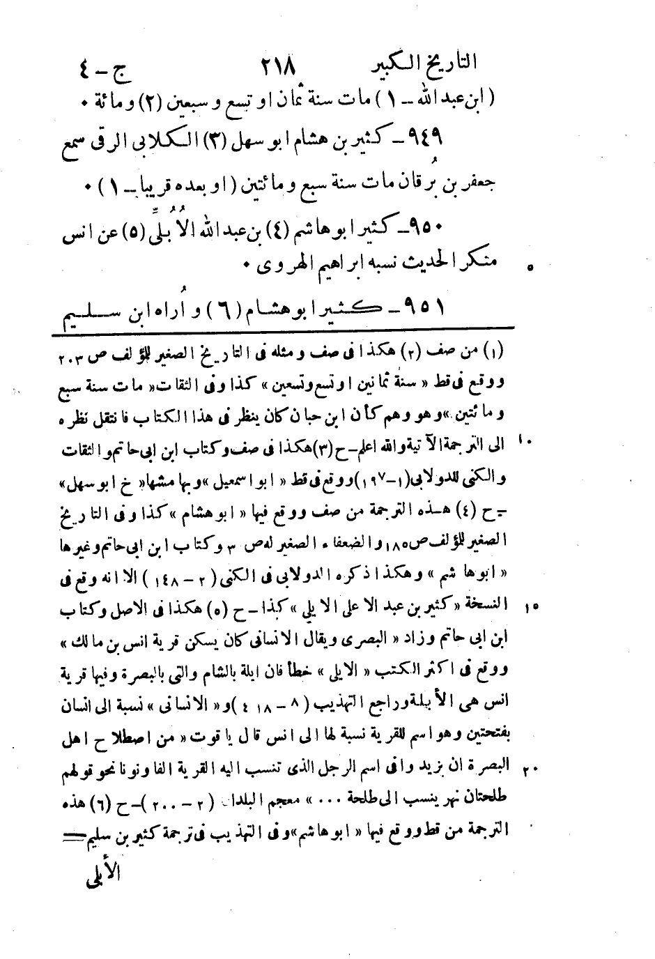 950 - كثير أَبُو هاشم (4) بْن عَبْد اللَّه الأبلي (5) عَنْ أنس منكر الحديث نسبه إِبْرَاهِيم الهروي.