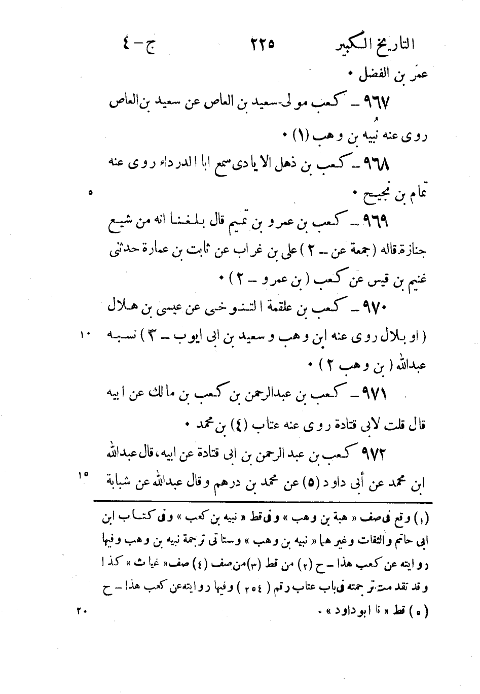 (1) وقع في صف (هبة بن وهب) وفى قط (نبيه بن كعب) وفى كتاب ابن ابى حاتم والثقات وغيرهما (نبيه بن وهب) وستاتى ترجمة نبيه بن وهب وفيها روايته عن كعب هذا - ح (2) من قط (3) من صف (4) صف (غياث) كذا وقد تقدمت ترجمته في باب عتاب رقم (254) وفيها روايته عن كعب هذا - ح (5) قط (نا أبو داود) .