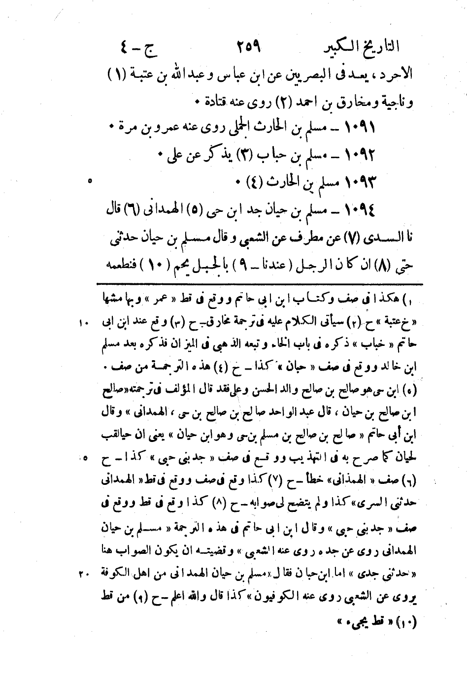1094 - مسلم بن حيان جد ابن حي (5) الهمداني (6) قَالَ نا السدي (7) عَنْ مطرف عَنِ الشَّعْبِيّ وقَالَ مُسْلِم بْن حيان حدثني حتى (8) إن كَانَ الرجل (عِنْدَنَا - 9) بالجبل يحم (10) فنطعمه