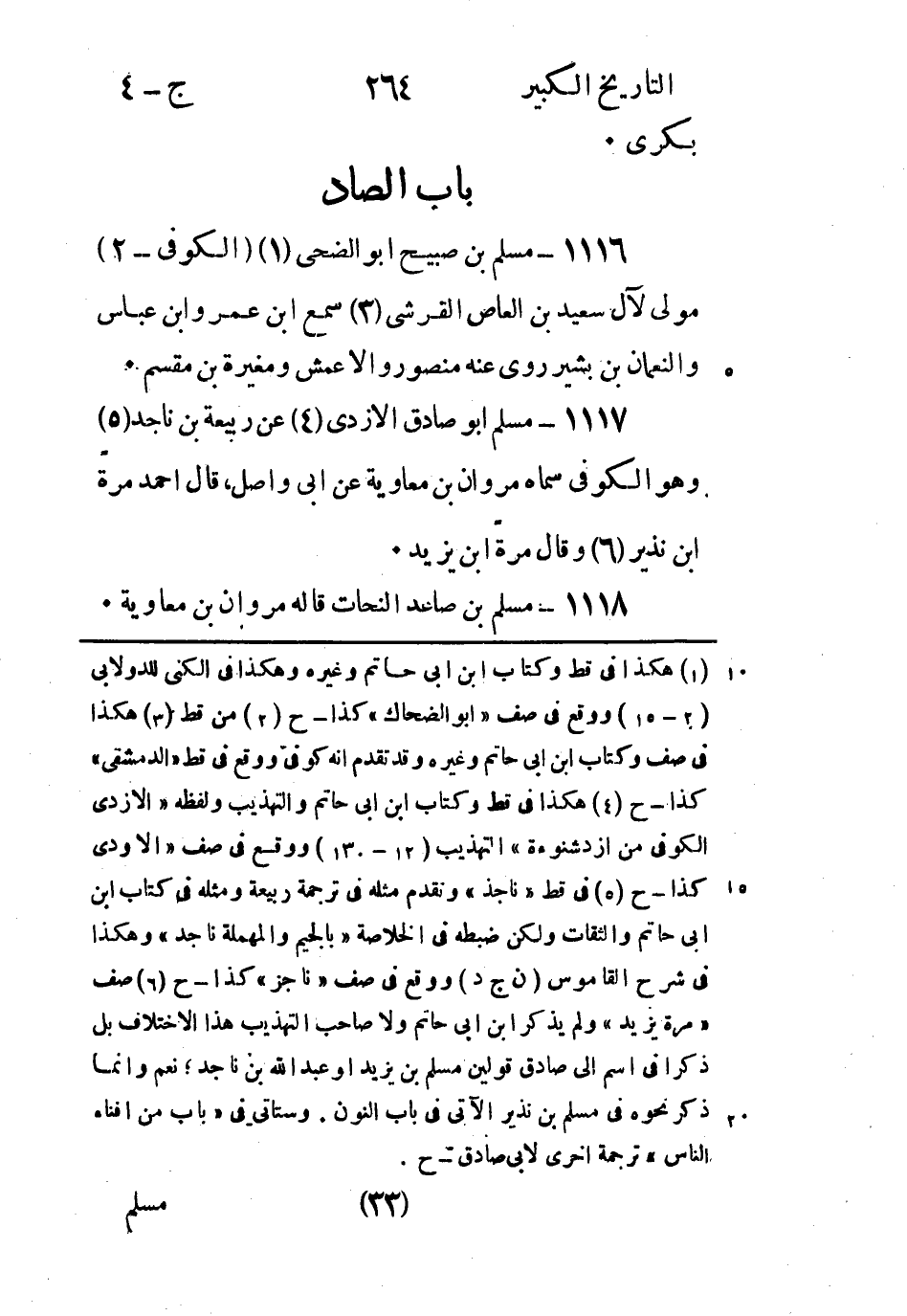 1117 - مُسْلِم أَبُو صادق الْأَزْدِيّ (4) عَنْ ربيعة بن ناجد (5) وهو الكوفِي سماه مروان بْن مُعَاوِيَة عَنْ أَبِي واصل، قَالَ أَحْمَد مرة ابْن نذير (6) وقَالَ مرة ابْن يزيد.