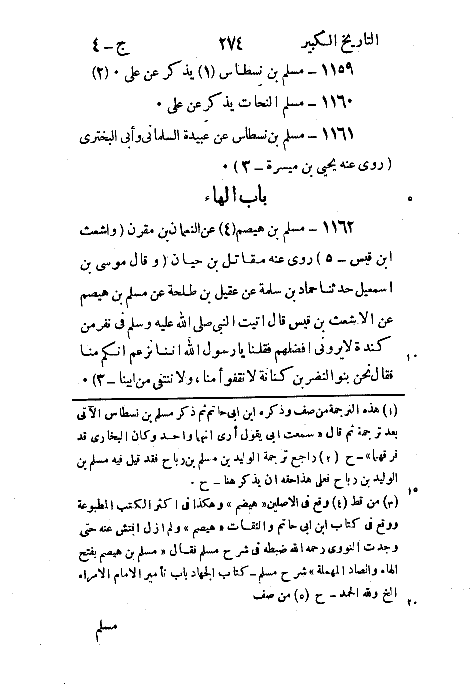 (3) من قط (4) وقع في الاصلين (هيضم) وهكذا في اكثر الكتب المطبوعة ووقع في كتاب ابن ابى حاتم والثقات (هيصم) ولم ازل افتش عنه حتى وجدت النووي رحمه الله ضبطه في شرح مسلم فقال (مسلم بن هيصم بفتح الهاء والصاد المهملة) شرح مسلم - كتاب الجهاد باب تأمير الامام الامراء الخ ولله الحمد - ح (5) من صف (*)