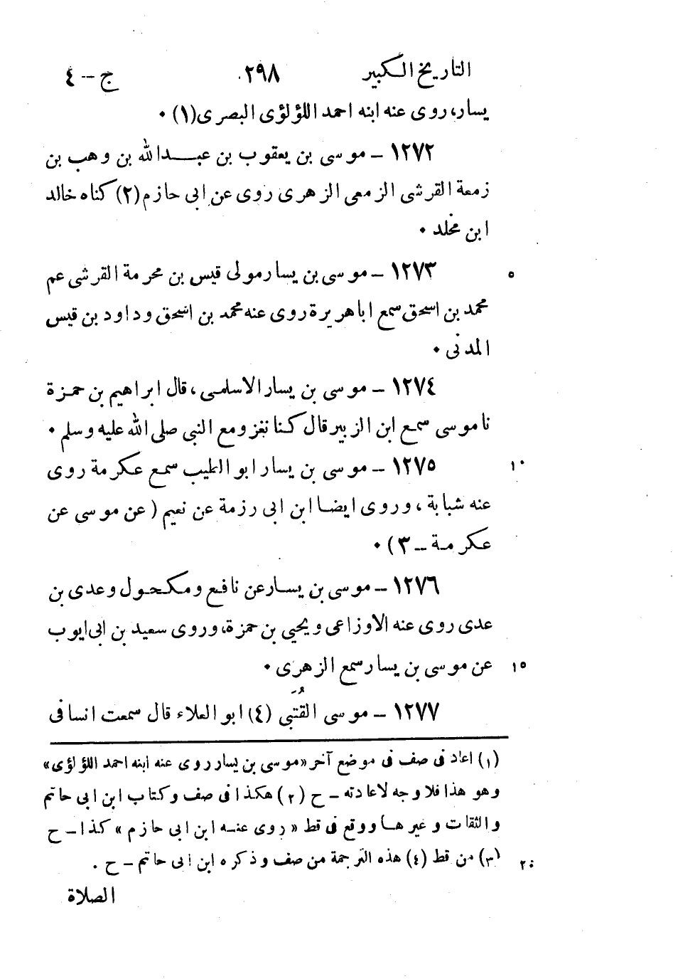 (1) اعاد في صف في موضع آخر (مُوسَى بْن يسار روى عنه ابنه أَحْمَد اللؤلؤي) وهو هذا فلا وجه لاعادته - ح (2) هكذا في صف وكتاب ابن ابى حاتم والثقات وغيرها ووقع في قط (روى عنه ابن ابى حازم) كذا - ح (3) من قط (4) هذه الترجمة من صف وذكره ابن ابى حاتم - ح.