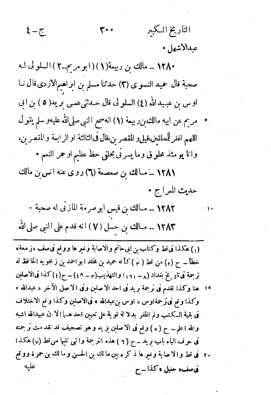 3 - 48) - ح (4) كذا في الاصلين هنا وكذا تقدم في ترجمة بريد في احد الاصلين وفى الاصل الآخر (عبد الله) وكذا وقع في ترجمة اوس (اوس بن عبد الله) في الاصلين وكذا وقع اختلاف في بقية الكتب ولم اظفر بدلالة قوية على تعيين احدهما الا ان عبيد الله اشبه والله اعلم - ح (5) وقع في الاصلين يزيد وهو تصحيف قد تقدمت ترجمته في حرف الباء باب بريد - ح (6) هذه الترجمة والتى تليها من قط (7) هكذا في قط والاصابة وغيرها ذكره بين مالك بن الحسن ومالك بن حمزة ووقع في صف (حنبل) كذا - ح.