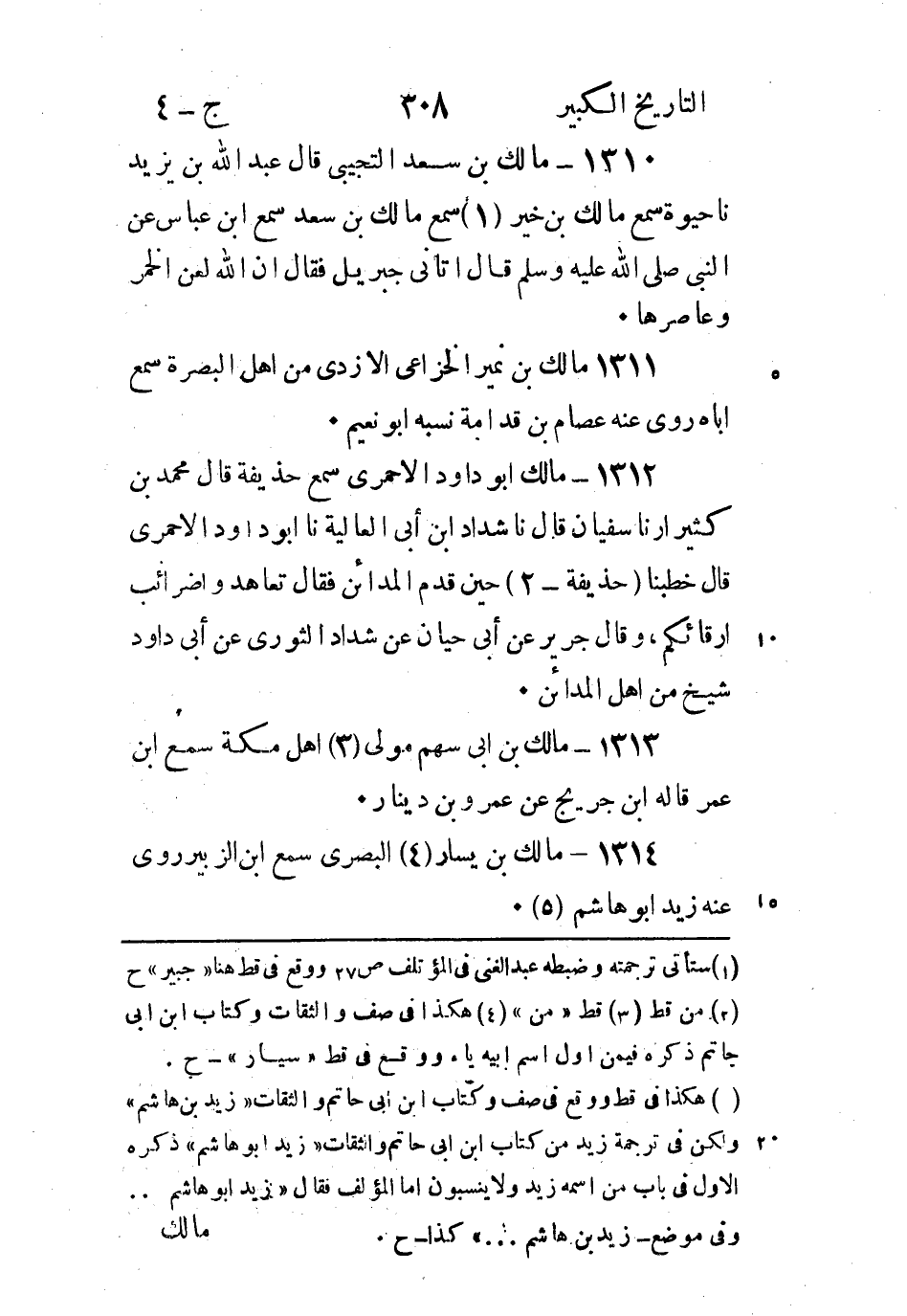 1314 - مالك بْن يسار (4) البصري سمع ابن الزبير روى