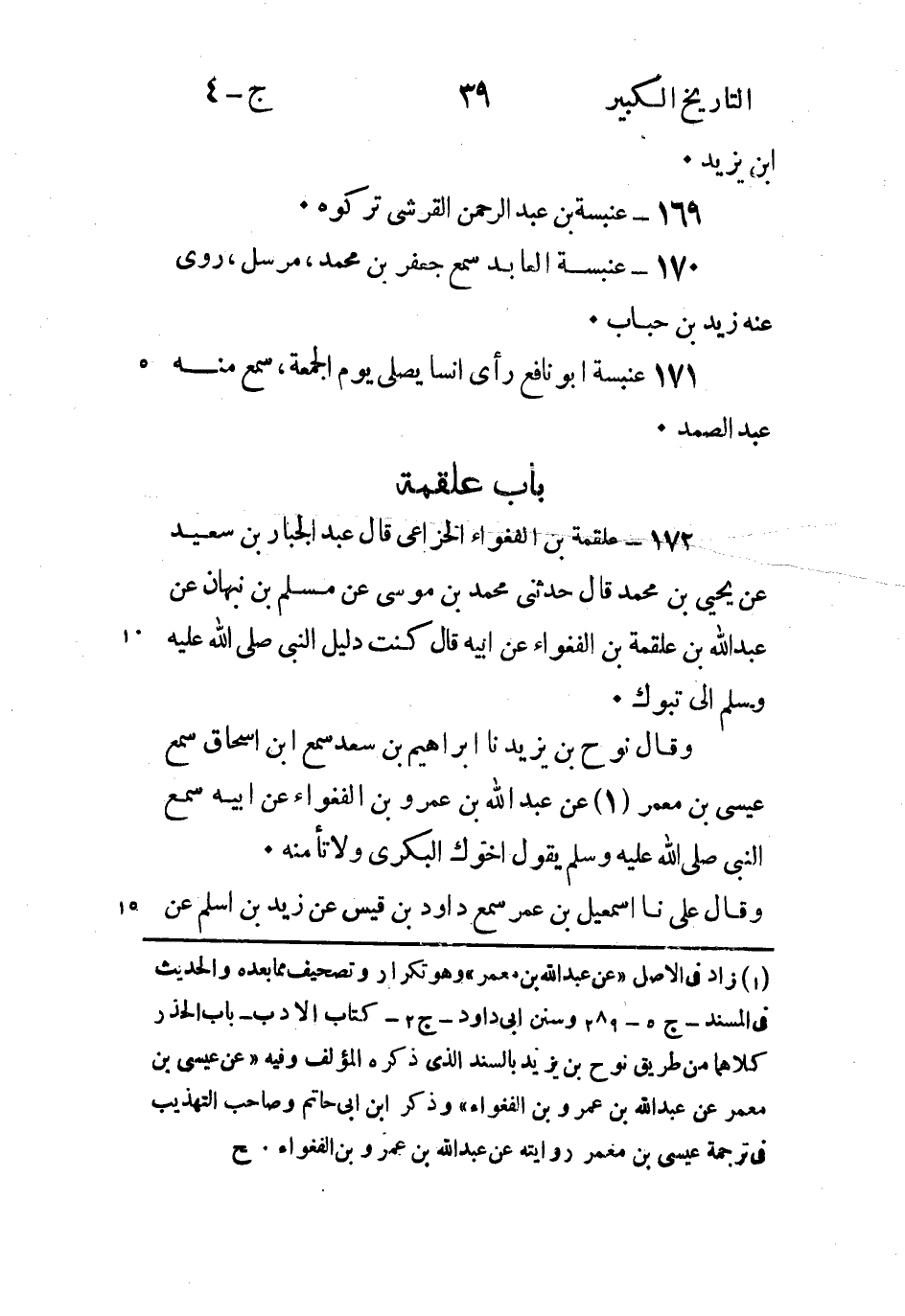 172 - عَلْقَمَةُ بْنُ الْفَغْوَاءِ الْخُزَاعِيُّ قَالَ عَبْدُ الْجَبَّارِ بْنُ سَعِيدٍ عَنْ يَحْيَى بْنِ مُحَمَّدٍ قَالَ حَدَّثَنِي مُحَمَّدُ بْنُ مُوسَى عَنْ مُسْلِمِ بْن نبهَان عَنْ عَبْدِ اللَّهِ بْنِ علقمة بن الفغواء عن أَبِيهِ قَالَ كُنْتُ دَلِيلَ النَّبِيِّ صَلَّى اللَّهُ عَلَيْهِ وَسَلَّمَ إِلَى تَبُوكَ.