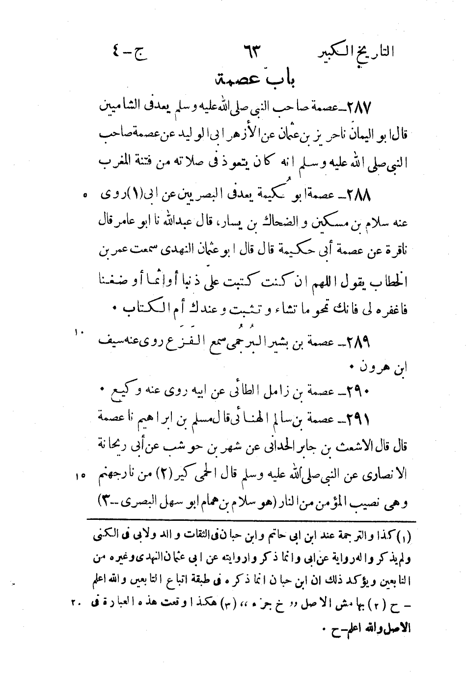 288 - عصمة أَبُو حكيمة يعد فِي الْبَصْرِيِّينَ عَنْ أَبِي (1) روى عَنْهُ سلام بْن مسكين والضحاك بْن يسار، قَالَ عبد الله نا أبو عامر قال ناقرة عَنْ عصمة أَبِي حكيمة قَالَ قَالَ أَبُو عثمان النهدي سَمِعْتُ عُمَر بْن الْخَطَّاب يَقُولُ اللَّهم إن كنت كتبت عَلِيّ ذنبا أو إثما أو ضغنا فاغفره لي فإنك تمحو ما تشاء وتثبت وعندك أم الكتاب.