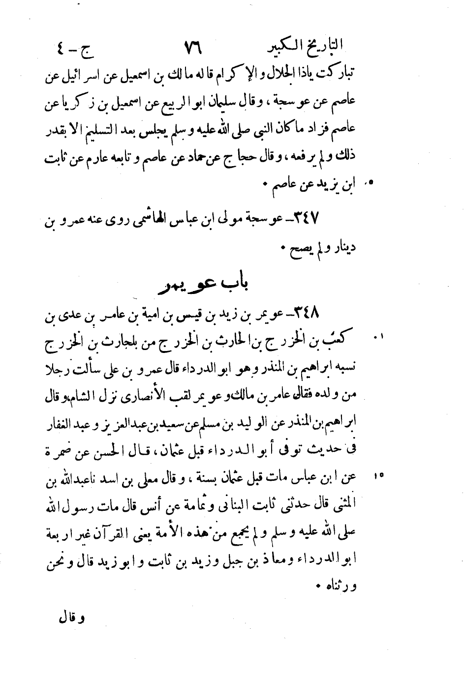 347 - عوسجة مولى ابن عَبَّاس الْهَاشِمِيّ روى عَنْهُ عَمْرو بْن دينار ولم يصح.