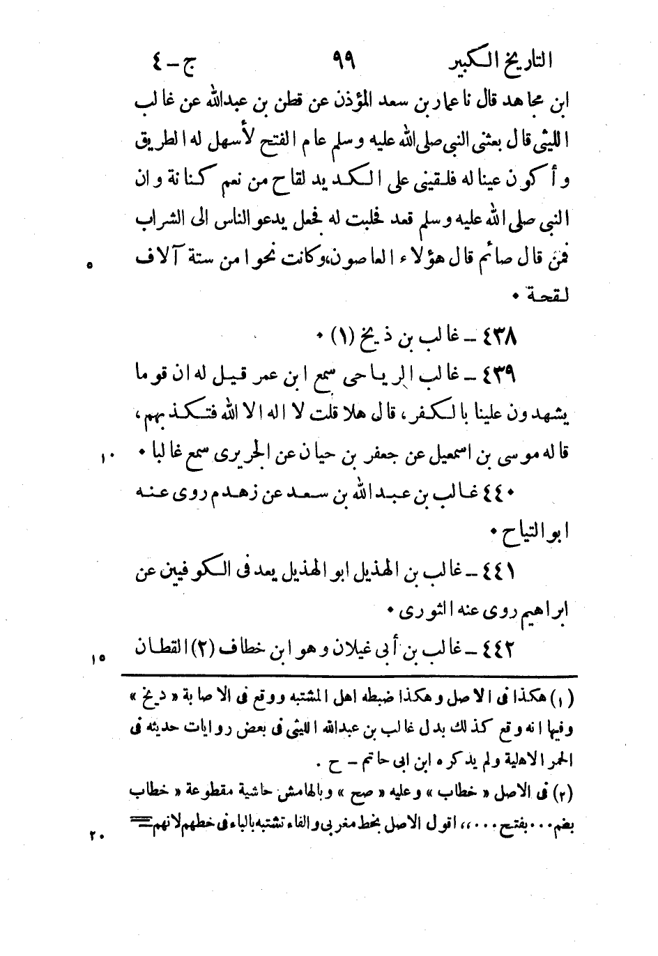 (1) هكذا في الاصل وهكذا ضبطه اهل المشتبه ووقع في الاصابة (ديخ) وفيها انه وقع كذلك بدل غالب بن عبد الله الليثى في بعض روايات حديثه في الحمر الاهلية ولم يذكره ابن ابى حاتم - ح.