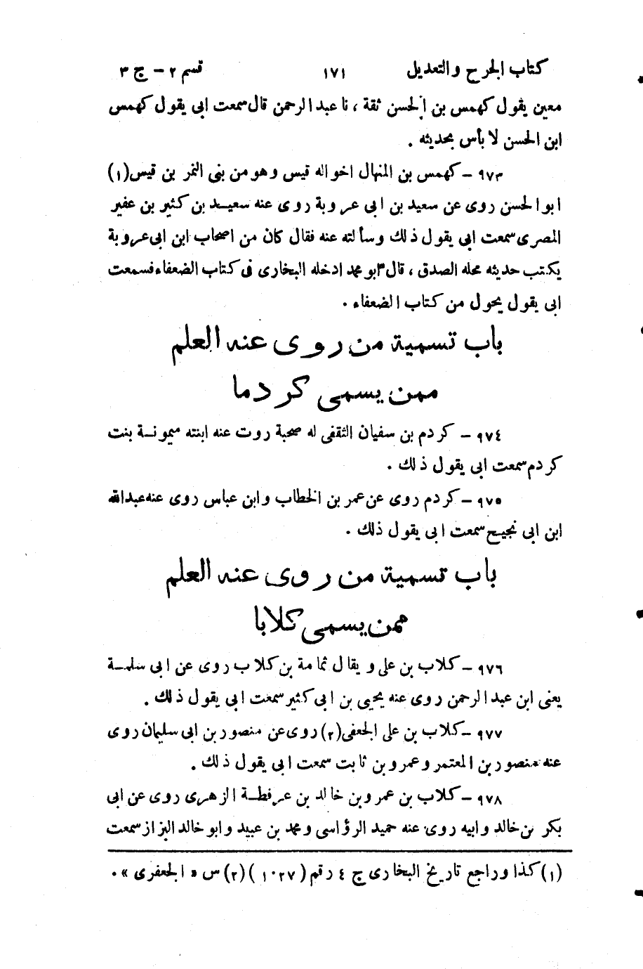 - باب تسمية من رُوي عنه العلم، مِمَّن يُسَمَّى كردما.