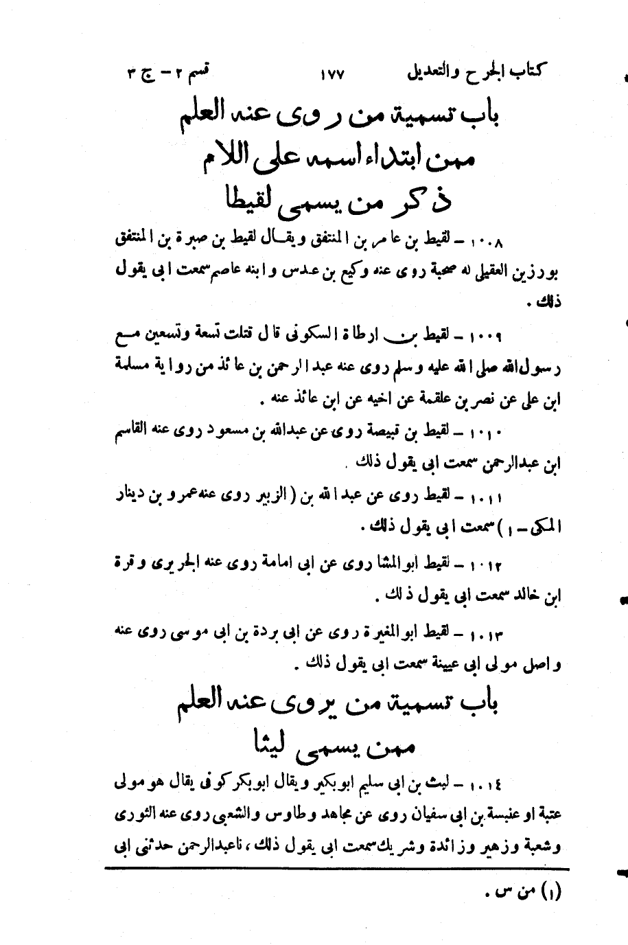 - باب تسمية من رُوي عنه العلم، ممن إبتداء اسمه على اللام.