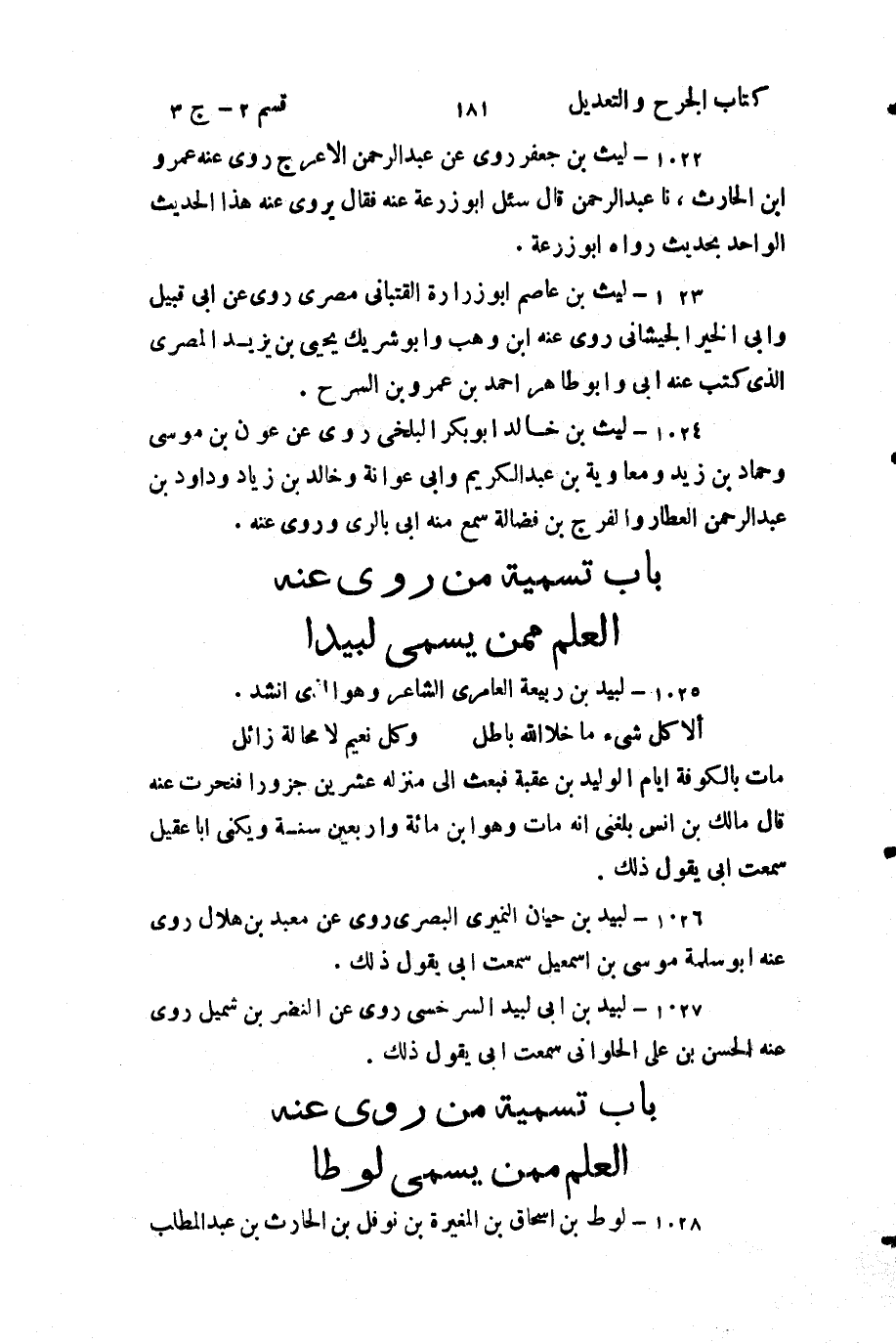 - باب تسمية من رُوي عنه العلم، مِمَّن يُسَمَّى لبيدًا.
