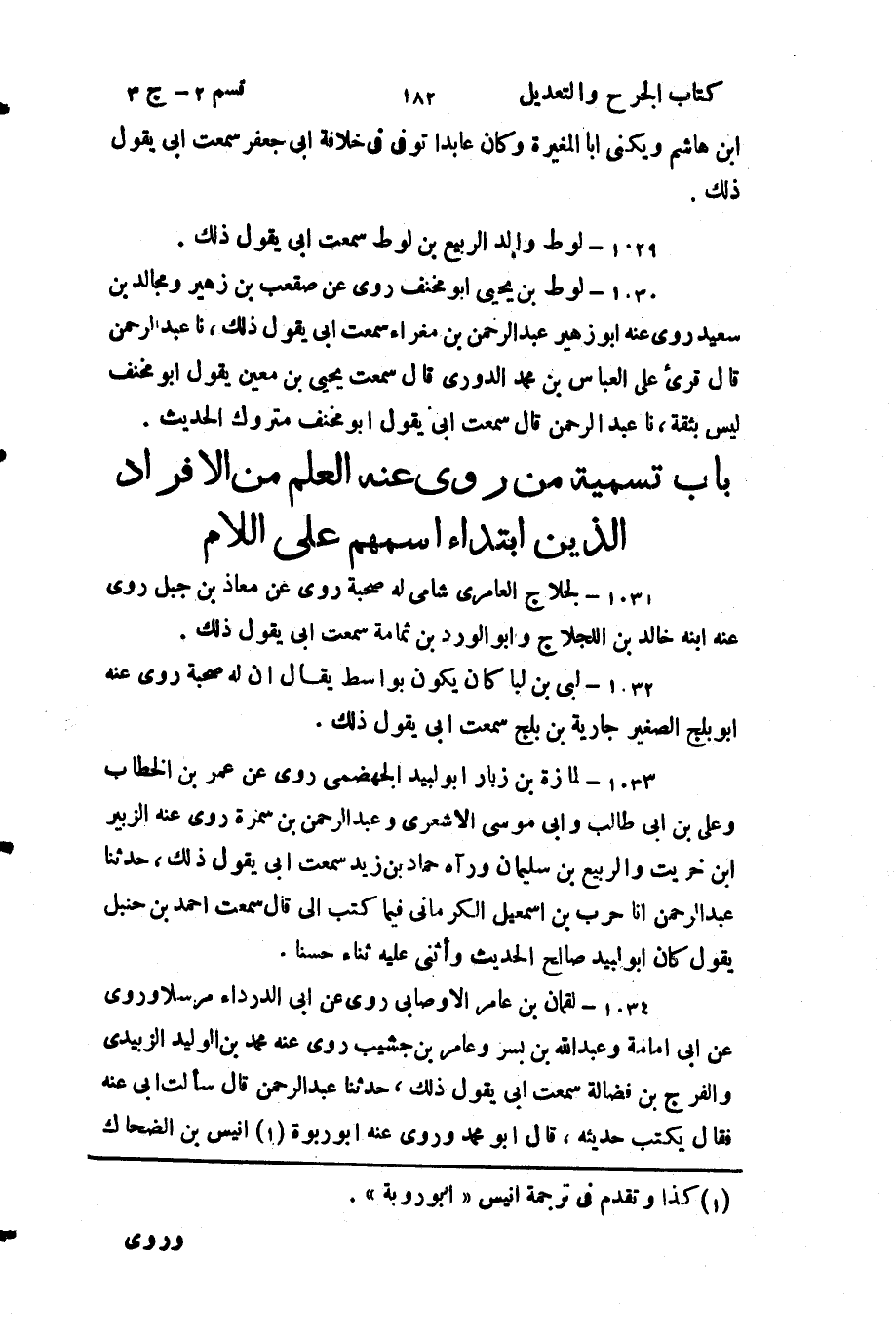 - باب تسمية من رُوي عنه العلم من الأفراد الذين إبتداء اسمهم على اللام.
