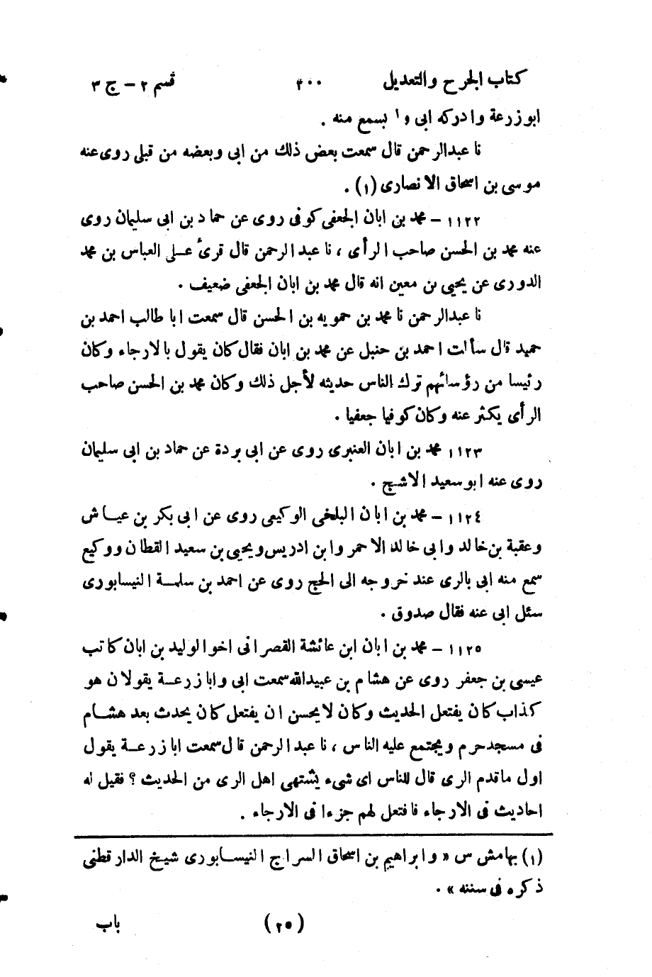 حَدثنا عَبد الرَّحمن، حَدثنا محمد بن حمويه بن الحسن، قال: سَمِعتُ أبَا طالب أَحمد بن حميد، قال: سألتُ أَحمد بن حَنبل عن محمد بن أبان، فقال: كان يقول بالارجاء، وكان رئيسًا من رؤسائهم، ترك الناس حديثه لأجل ذلك، وكان محمد بن الحسن صاحب الرأي يكثر عنه وكان كوفيًا جعفيًا.